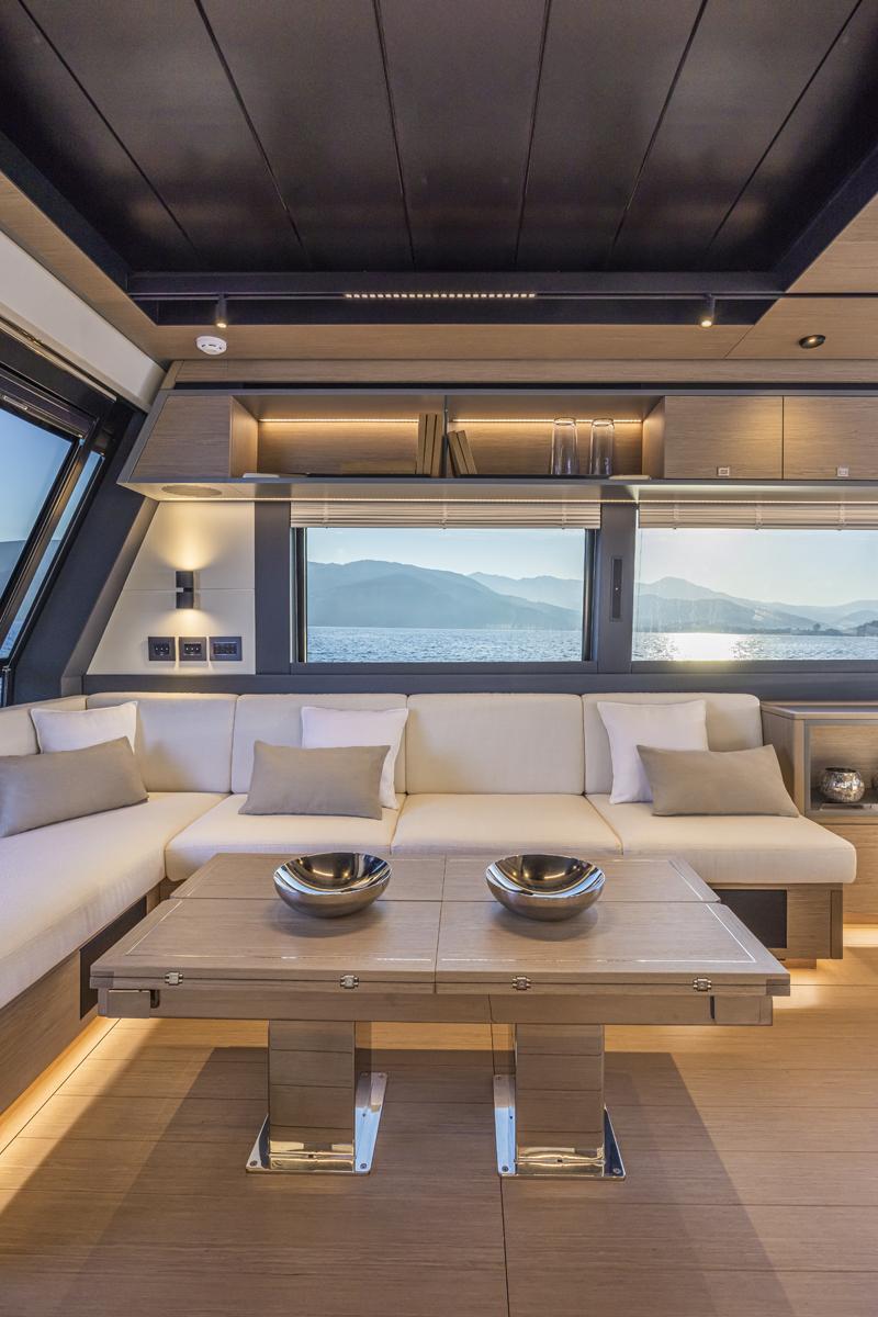 À bord, le Pardo GT75 offre un espace luxueux conçu pour le confort et la convivialité. Les intérieurs sont un mélange harmonieux de matériaux nobles créant une atmosphère chaleureuse et raffinée. Les cabines spacieuses et les espaces de vie offrent un confort inégalé pour les invités, plusieurs version sont disponibles de 2 à 4 cabines