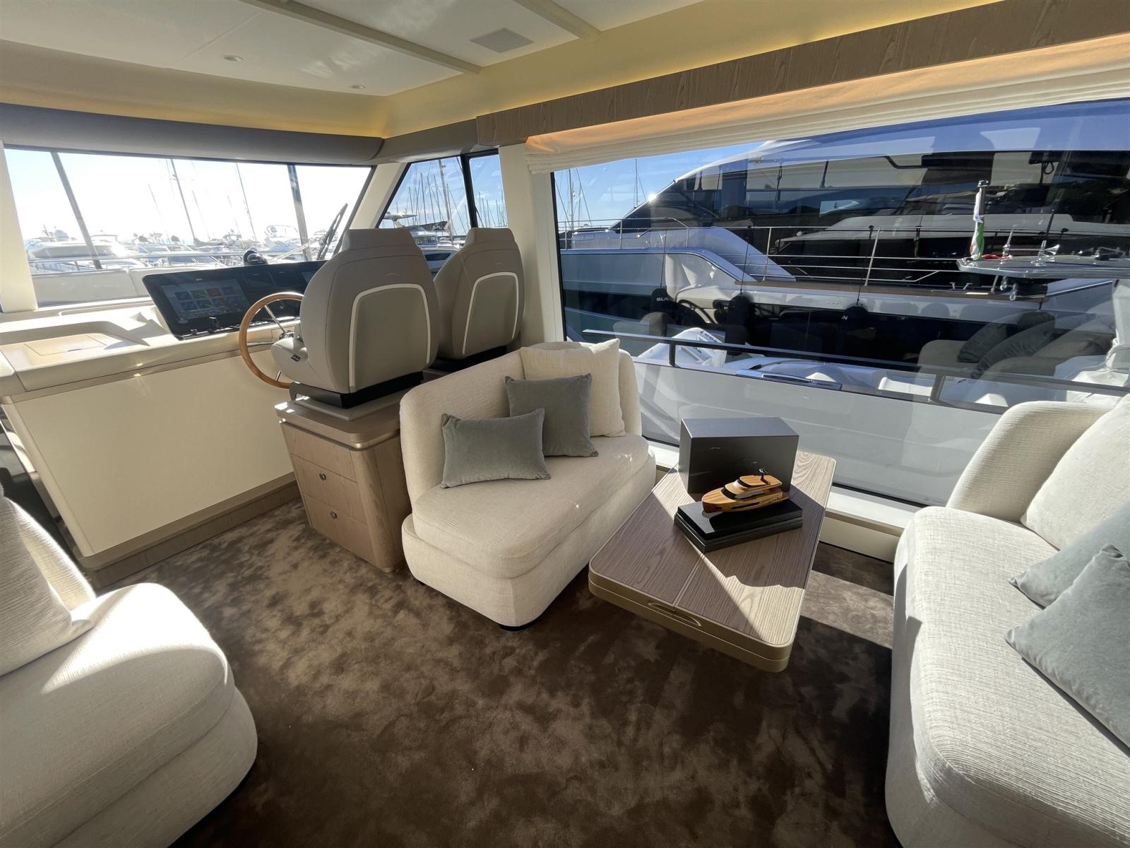 AIS (Raymarine AIS 700), Antenne radar (Raymarine), Compteur de chaîne, 4 Moniteur (Raymarine 16" (platinum package)), Joystick, Radio VHF (Raymarine), Siège copilote (fly and main helm), Yacht controller.