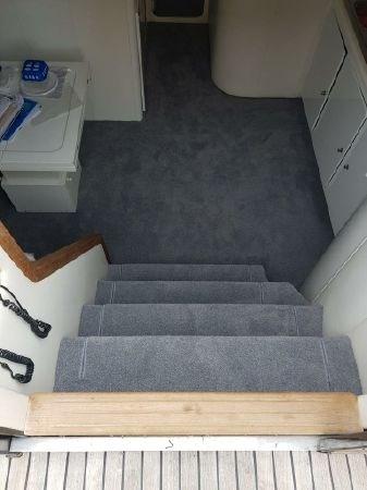 Vers le centre du bateau, un canapé trois places dessert la timonerie, flanqué à tribord d’un canapé supplémentaire, épaules sur le côté. Ici aussi, nous trouvons l’accès au pont inférieur où des intérieurs habitables et tout aussi « glamour » prennent vie.