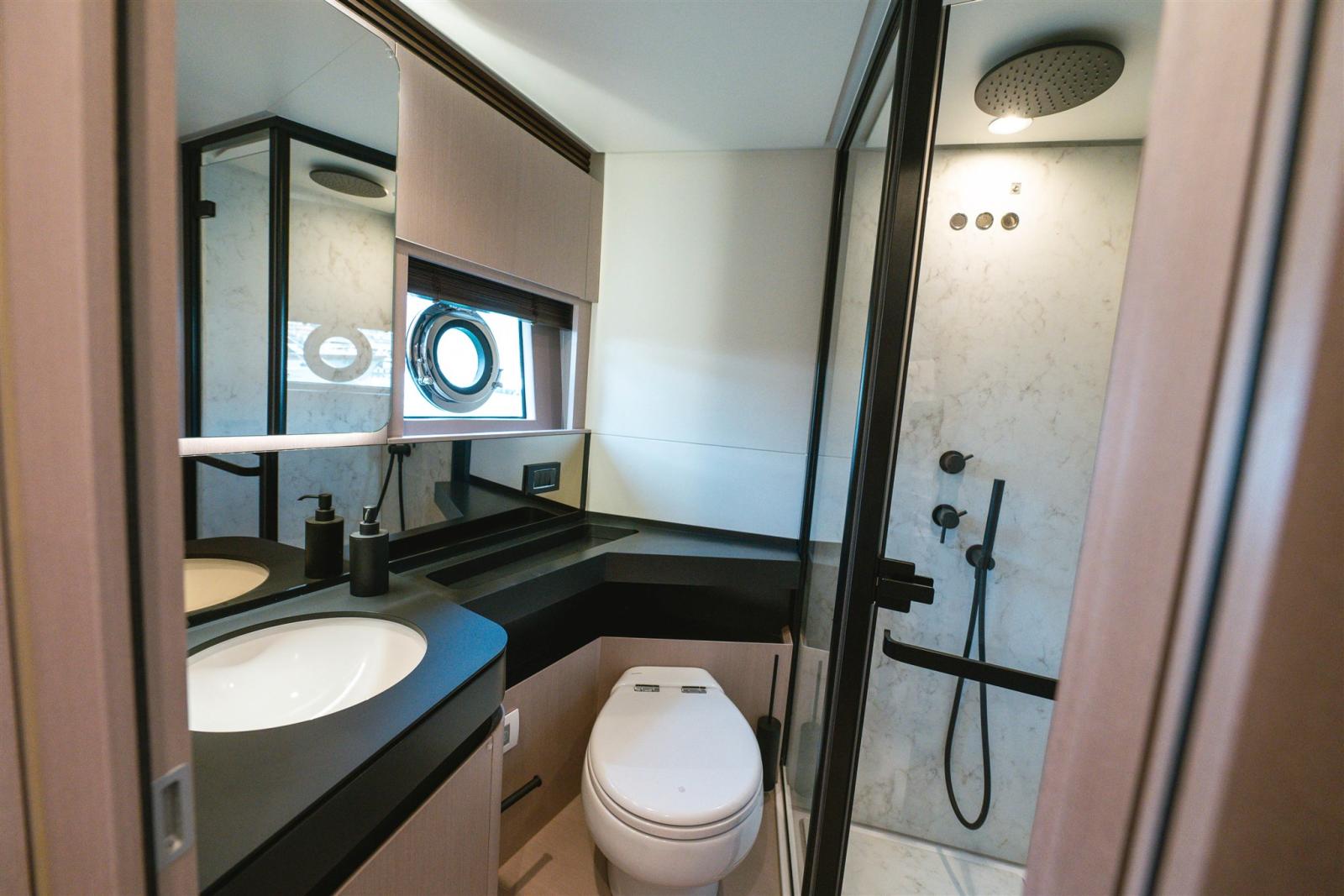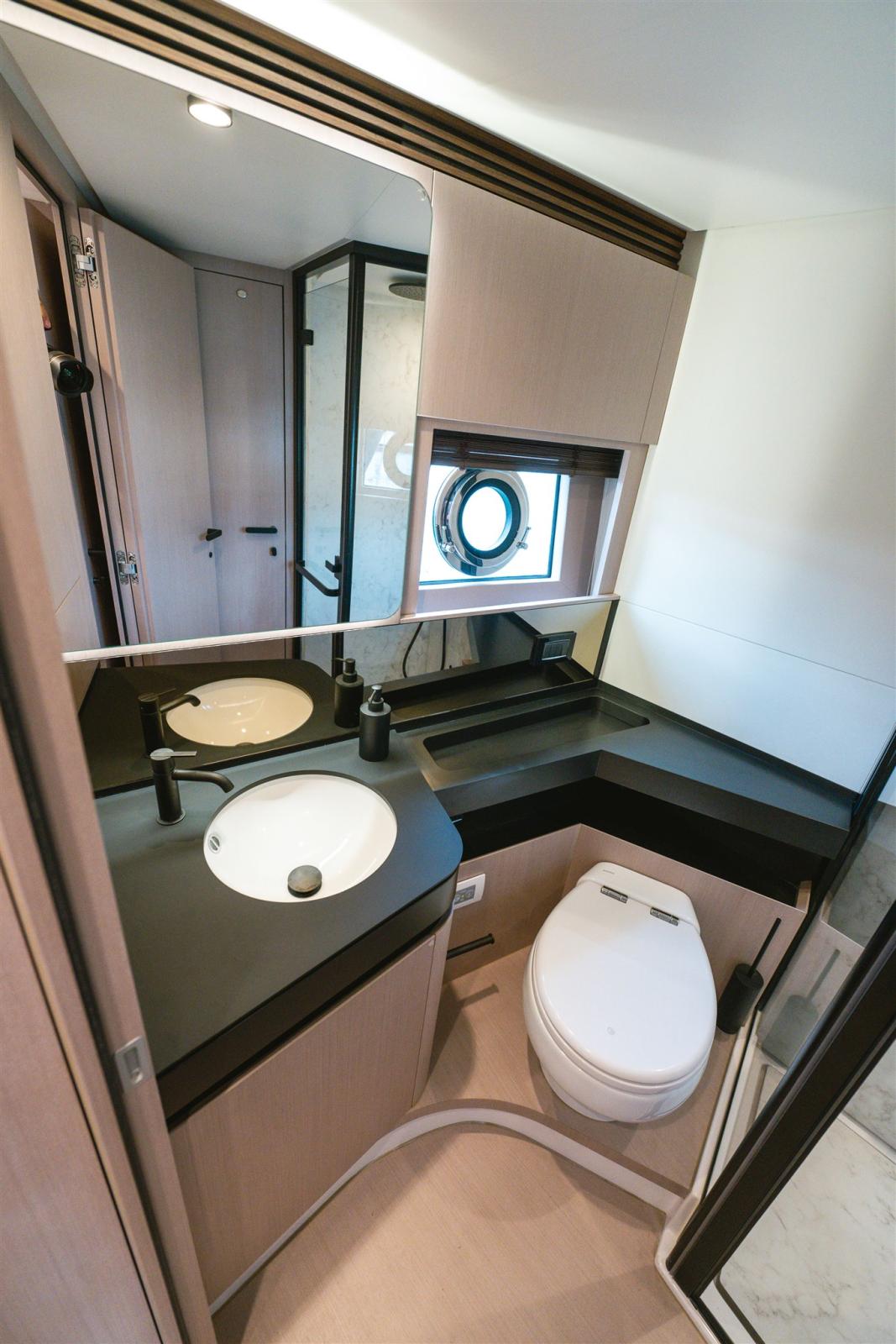 Air conditionné (120.000 btu), Coffre-fort (master), Gradateur de lumière (lowerdeck), 3 Toilettes électriques (+ integrated faucet/bidet).