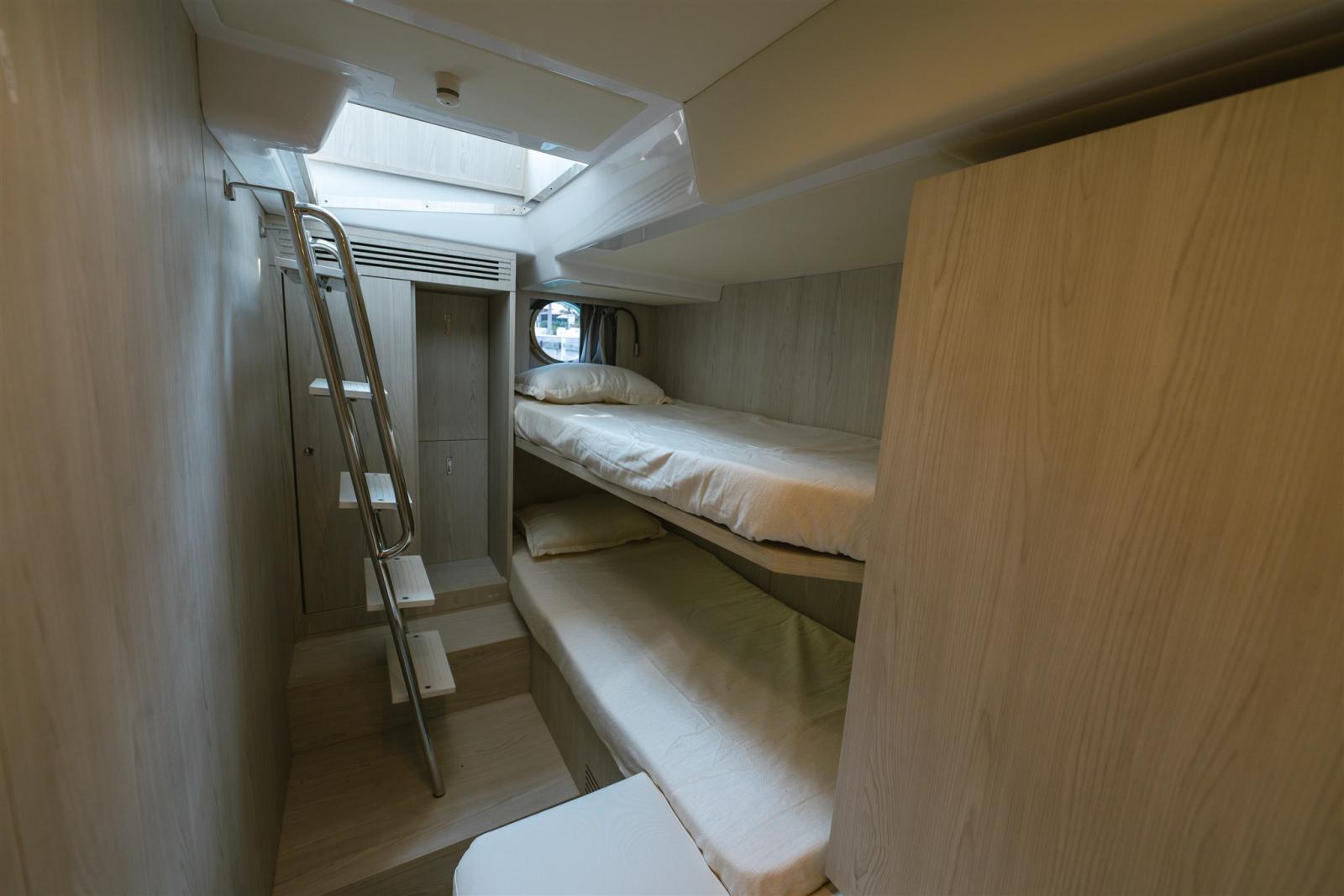 Cuisine, Réfrigérateur extérieur (on fly), 4 Réfrigérateur intérieur (1 freezer, 2 in galley, 1 lowerdeck), Machine à glaçons (cockpit), Lave et sèche-linge, Lave-vaisselle, Winecooler.