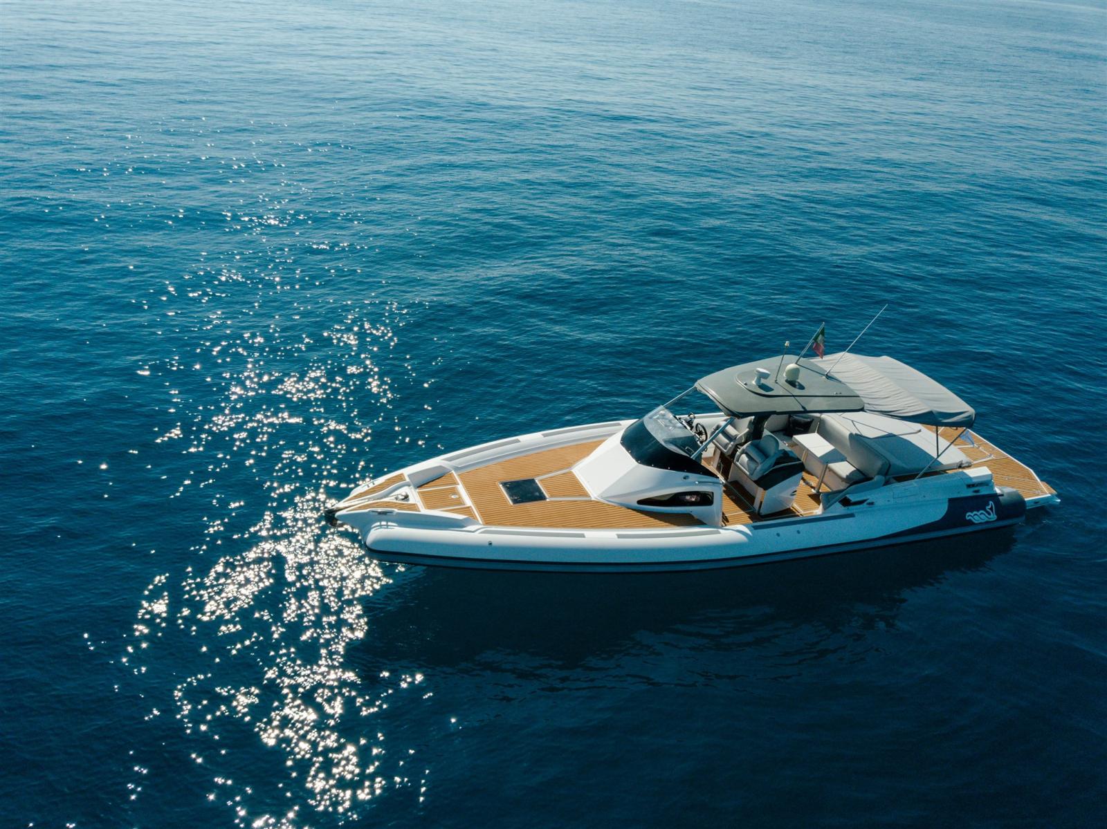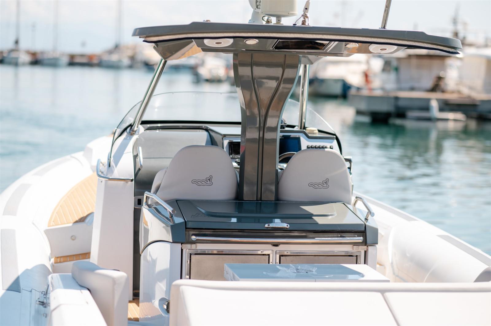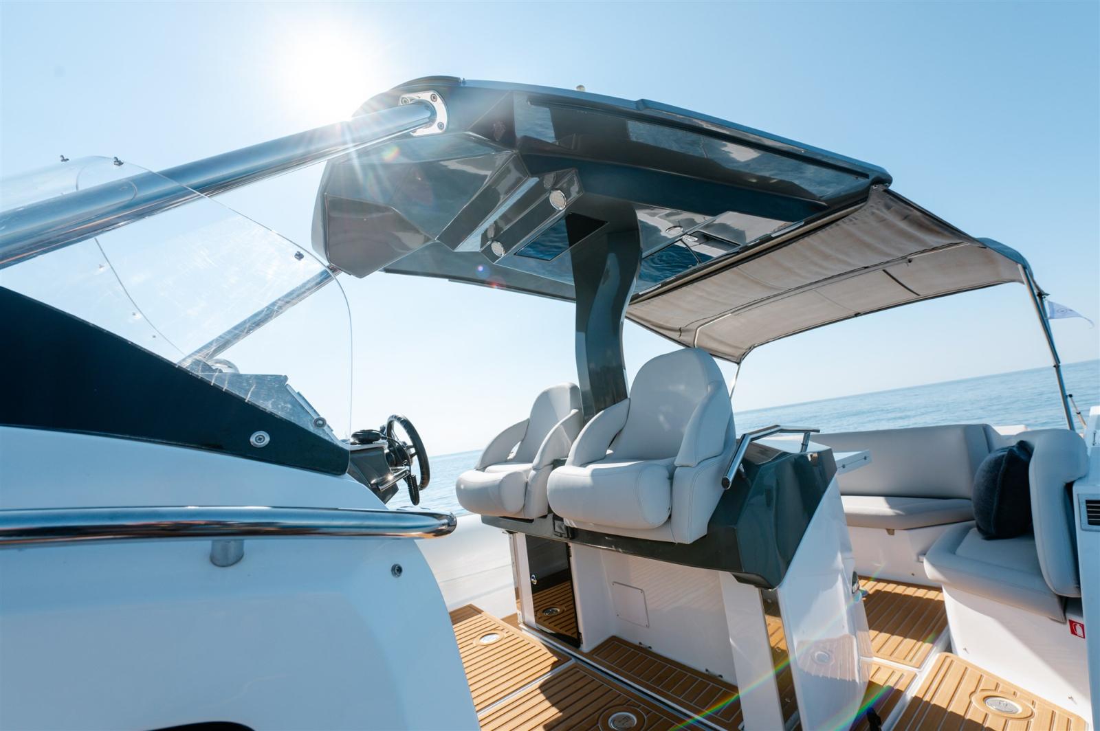 Bimini (at stern), Sellerie complète (+ covers), Taud de console, Taud de siège.