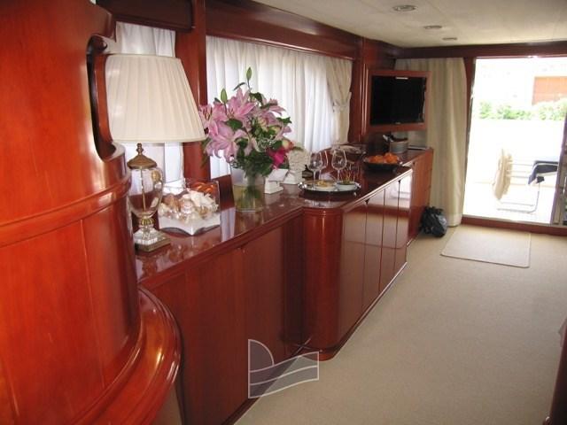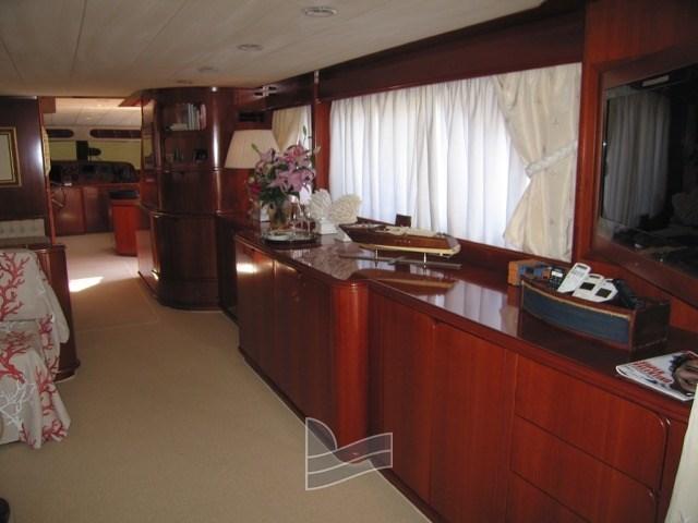 Eau sous pression, Passavant en teck (nuovi 2023), Douche de cockpit, Double barre à roue, 2 Flaps hydrauliques, Grue de flybridge, Éclairage de courtoisie, Passerelle, Plateforme arrière (di poppa tenderlift), Pompe de cale automatique, Porte latérale, Cockpit en teck (e teak sul fly nuovi 2023), Prise de quai, Connexion eau sous pression à quai, Echelle de bain, table de cockpit, Corne, 2 Winch électrique arrière.