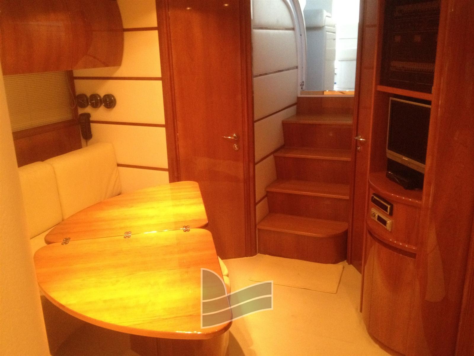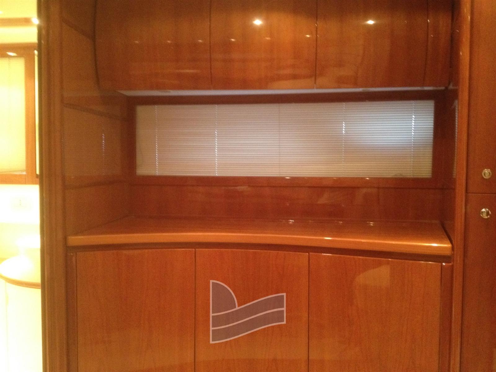 Eau sous pression, Couleur spéciale (Silver anno 2023), Douche de cockpit, Phare de poursuite, 2 Flaps hydrauliques, Extincteur(s) fixe(s), Lavabo dans le cockpit, Passerelle (idraulica), Plateforme arrière (di poppa in teak), Pompe de cale automatique, Cockpit en teck, Prise de quai, table de cockpit, Corne.