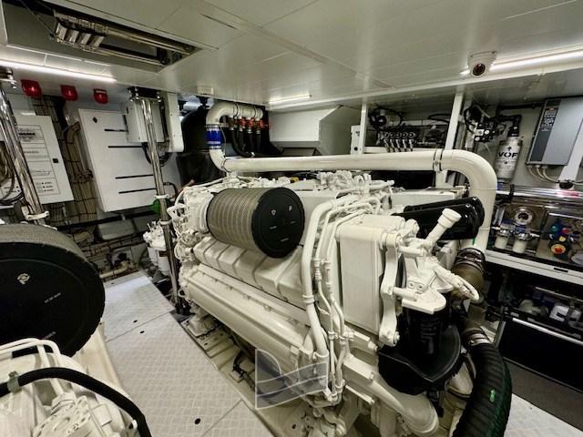 Alarme gaz, Alarme moteur, Alarme de pompe de cale, Eau sous pression, Passavant en teck, Douche de cockpit, Phare de poursuite, Flaps hydrauliques, Extincteur(s) fixe(s), Lavage de chaine, Éclairage de courtoisie, Spots sous-marins, Passerelle, Plateforme arrière, Pompe de cale automatique, Porte latérale, Porte latérale, Cockpit en teck, Prise de quai, Répétiteur électronique, Guindeau électrique, Echelle de bain, table de cockpit, Corne, Winch électrique avant.