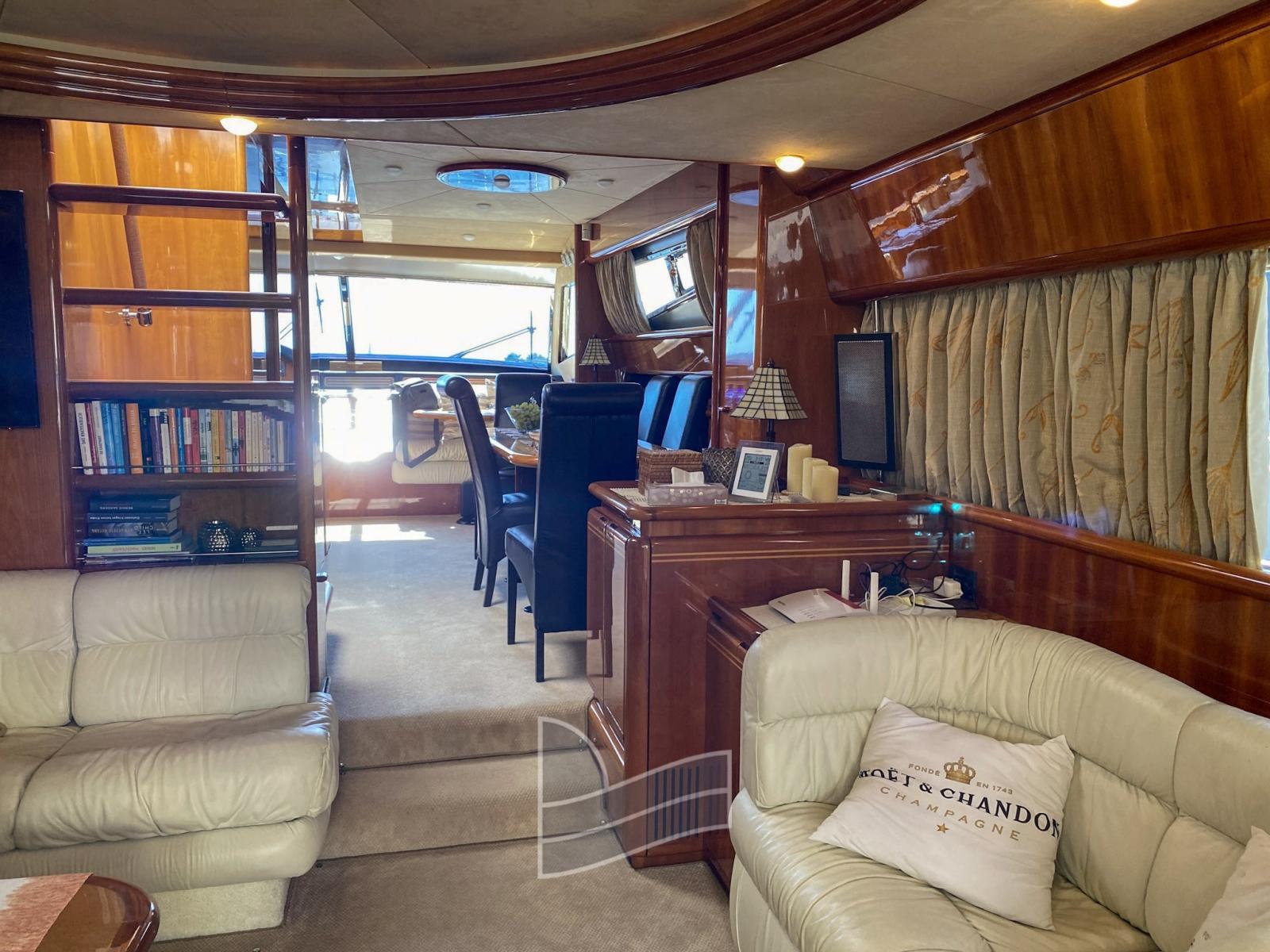 Alarme moteur, Eau sous pression, Passavant en teck, Douche de cockpit, 2 Flaps hydrauliques, Grue de flybridge, Extincteur(s) fixe(s), Indicateurs de flaps, Lavage de chaine, Lavabo dans le cockpit, Passerelle, Plateforme arrière (di poppa in teak), Cockpit en teck, Prise de quai, Connexion eau sous pression à quai, Onduleur, Guindeau électrique, Echelle de bain, table de cockpit, Corne, 2 Winch électrique arrière, Winch électrique avant.