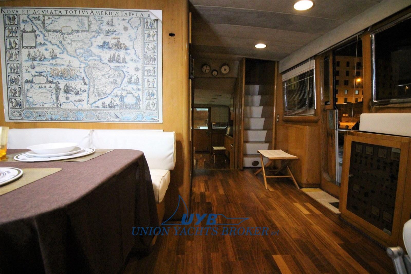 Eau sous pression, 14 Batteries, Passavant en teck, Douche de cockpit, Double barre à roue, Panneau solaire, Passerelle (Besenzoni), Plateforme arrière (strutturale), Porte latérale, Porte latérale, Cockpit en teck, Onduleur, Guindeau électrique, table de cockpit.