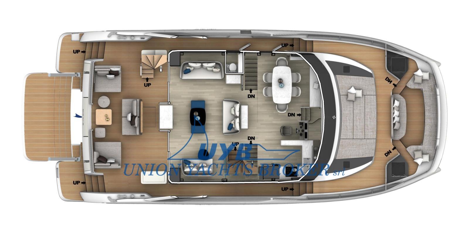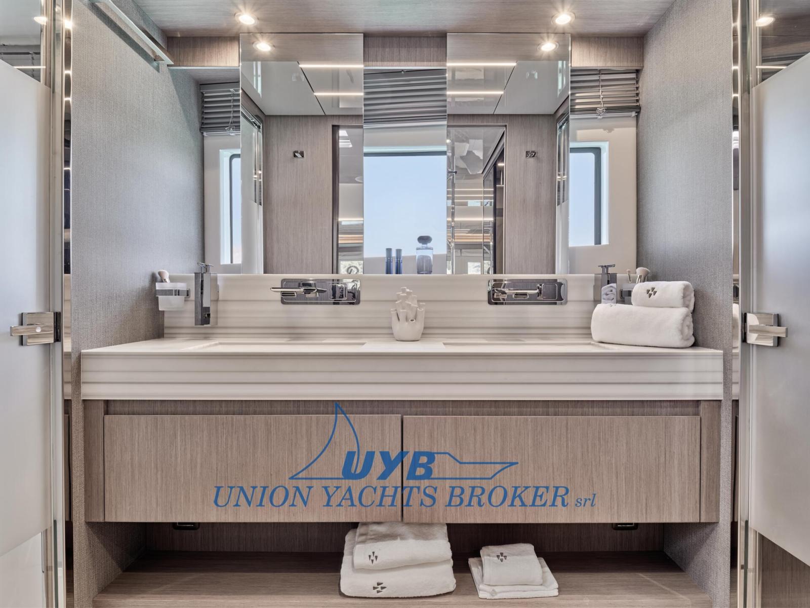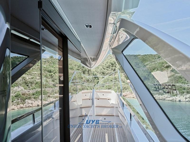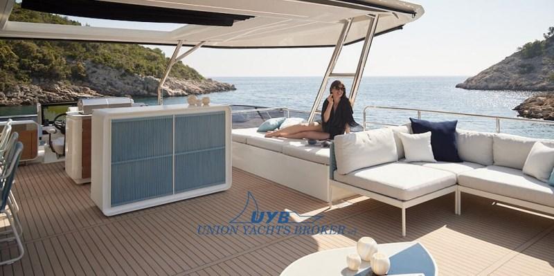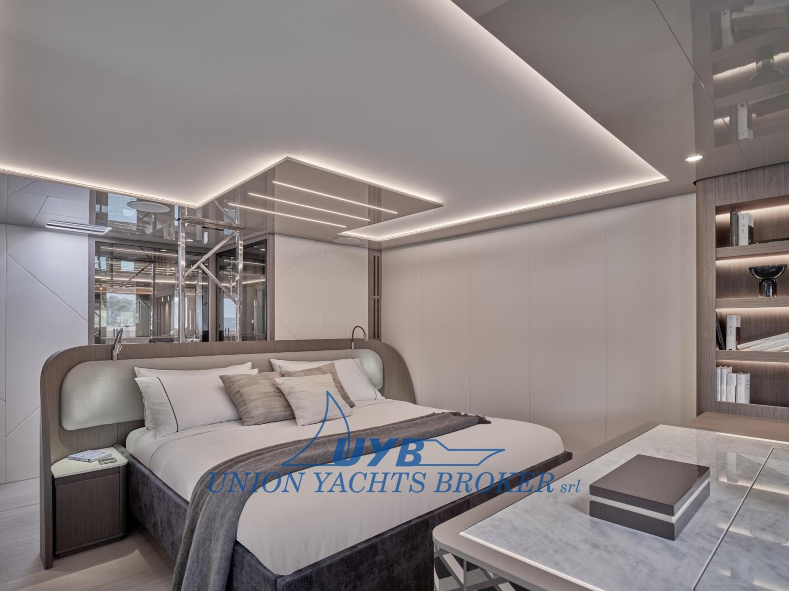 Couleur spéciale (verniciatura sulla parte anteriore del fly), Douche de cockpit, Double barre à roue, Hard top (fly con apertura elettrica softop), Spots sous-marins, Passerelle (Opacmare), Plateforme arrière (Opacmare Transformer 500Kg multifunzione), 8 Pompe de cale automatique, Prise de quai, Guindeau électrique, table de cockpit.