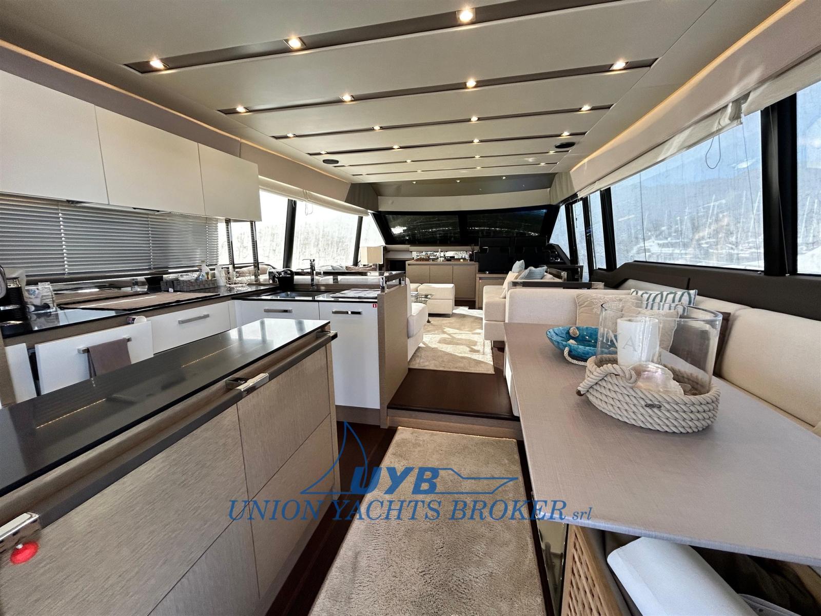 Nous trouvons un design d’intérieur synonyme de luminosité, d’espace, de facilité de mouvement et d’intimité. Cabine du propriétaire au niveau du salon. Avec une gamme toujours audacieuse et intemporelle, des finitions et matériaux de grande qualité, la PRESTIGE 680 conserve les caractéristiques techniques historiques de la gamme et bénéficie des dernières innovations.