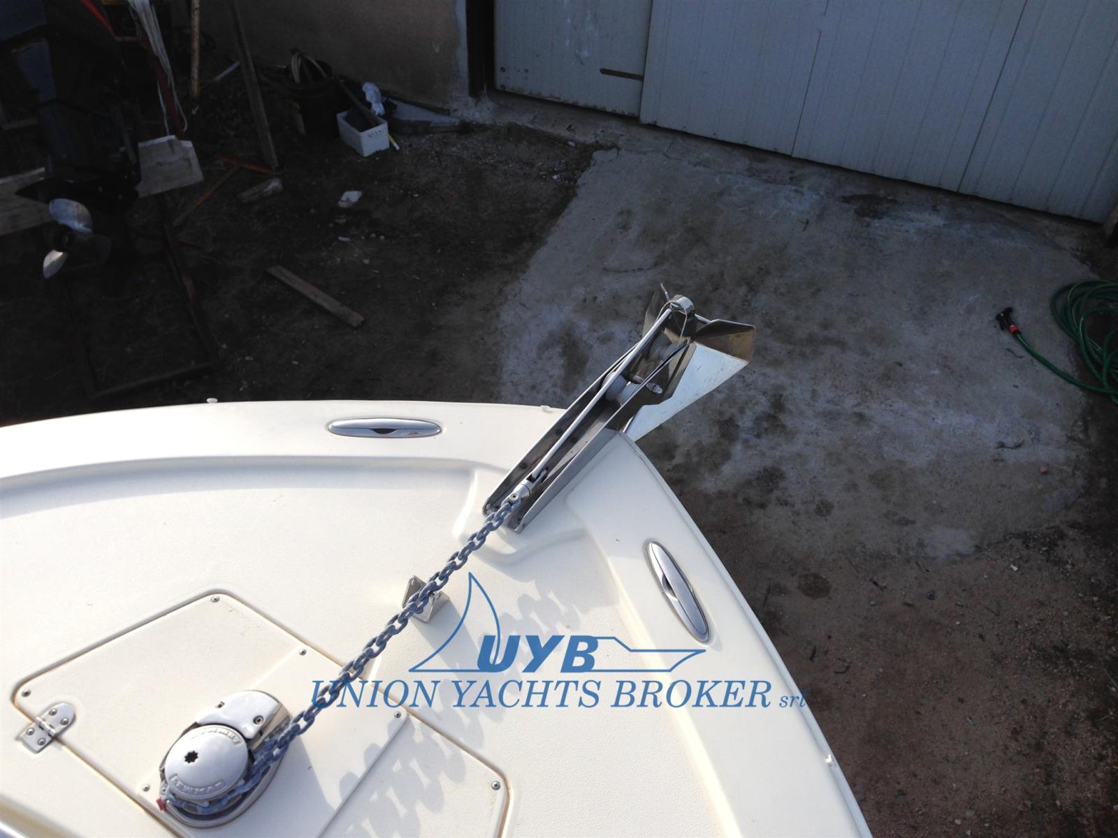 4 Batteries, Phare de poursuite, Éclairage de courtoisie, Spots sous-marins, Guindeau électrique, Echelle de bain, table de cockpit, T-Top.