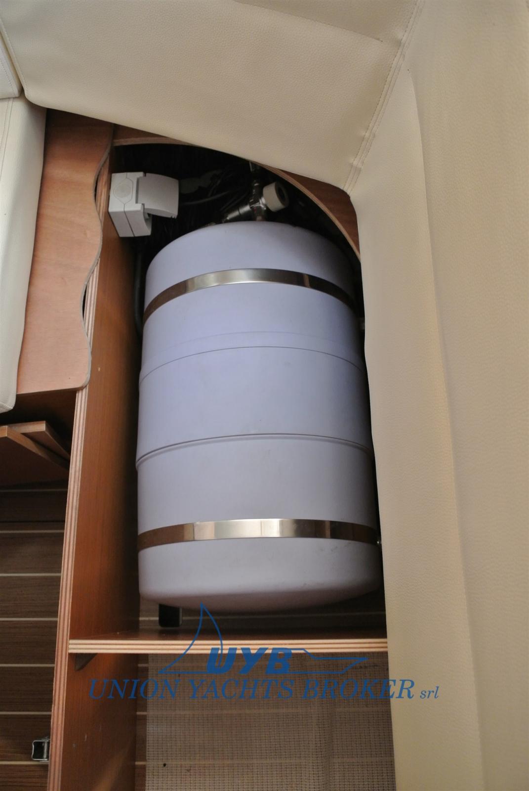 Alarme moteur, Eau sous pression, 5 Batteries, Douche de cockpit, Double barre à roue, Plateforme arrière, Pompe de cale automatique, Pompe de cale manuelle, Prise de quai, Guindeau électrique, Echelle de bain, Winch électrique (per randa).