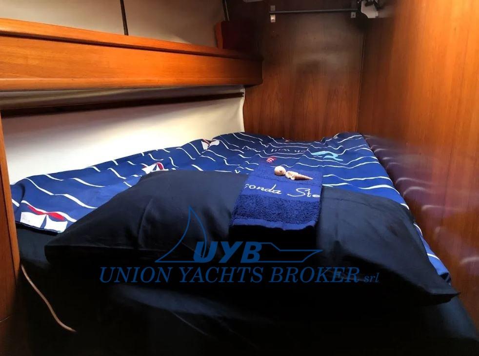 Le pont est parfaitement équipé avec latte de grand-voile sur enrouleur, gréement espion, gennaker et voile d’avant, bain de soleil à l’avant, grand cockpit avec auvent et capote, grande table pour accueillir confortablement 8/10 personnes, coussins extérieurs. Descente pratique vers la mer avec échelle pour des bains agréables et douche extérieure chaude.