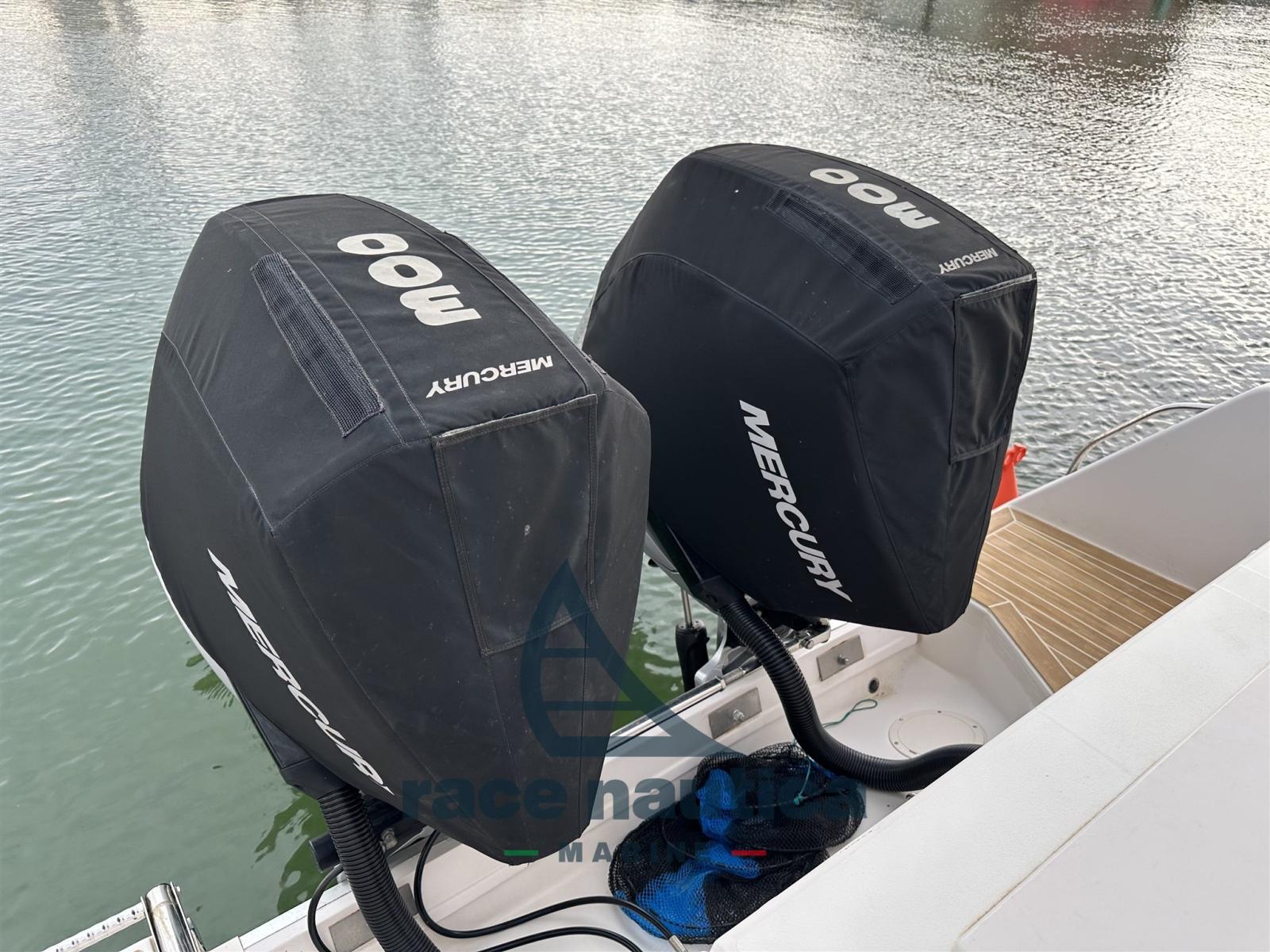 Alarme moteur, Auto Dynamic Trim Interceptor, Eau sous pression, Trim hydraulique, 3 Batteries, Douche de cockpit, Pompe de cale manuelle, Cockpit en teck (Teak sintetico 2021), Prise de quai, Guindeau électrique, Echelle de bain, Table pliante de salon, Corne, T-Top.