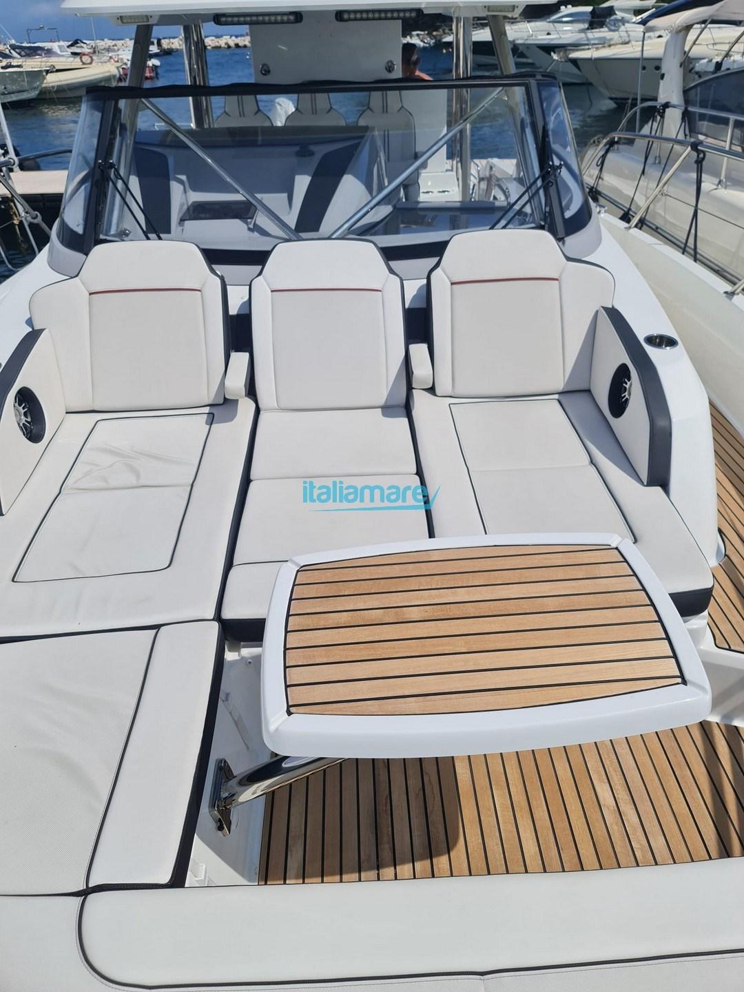 En résumé, il s’agit d’un bateau de promenade puissant, confortable et bien équipé, parfait pour ceux qui recherchent un sport-cruiser élégant, spacieux et fiable avec des performances élevées pour la navigation côtière et les croisières de plusieurs jours.