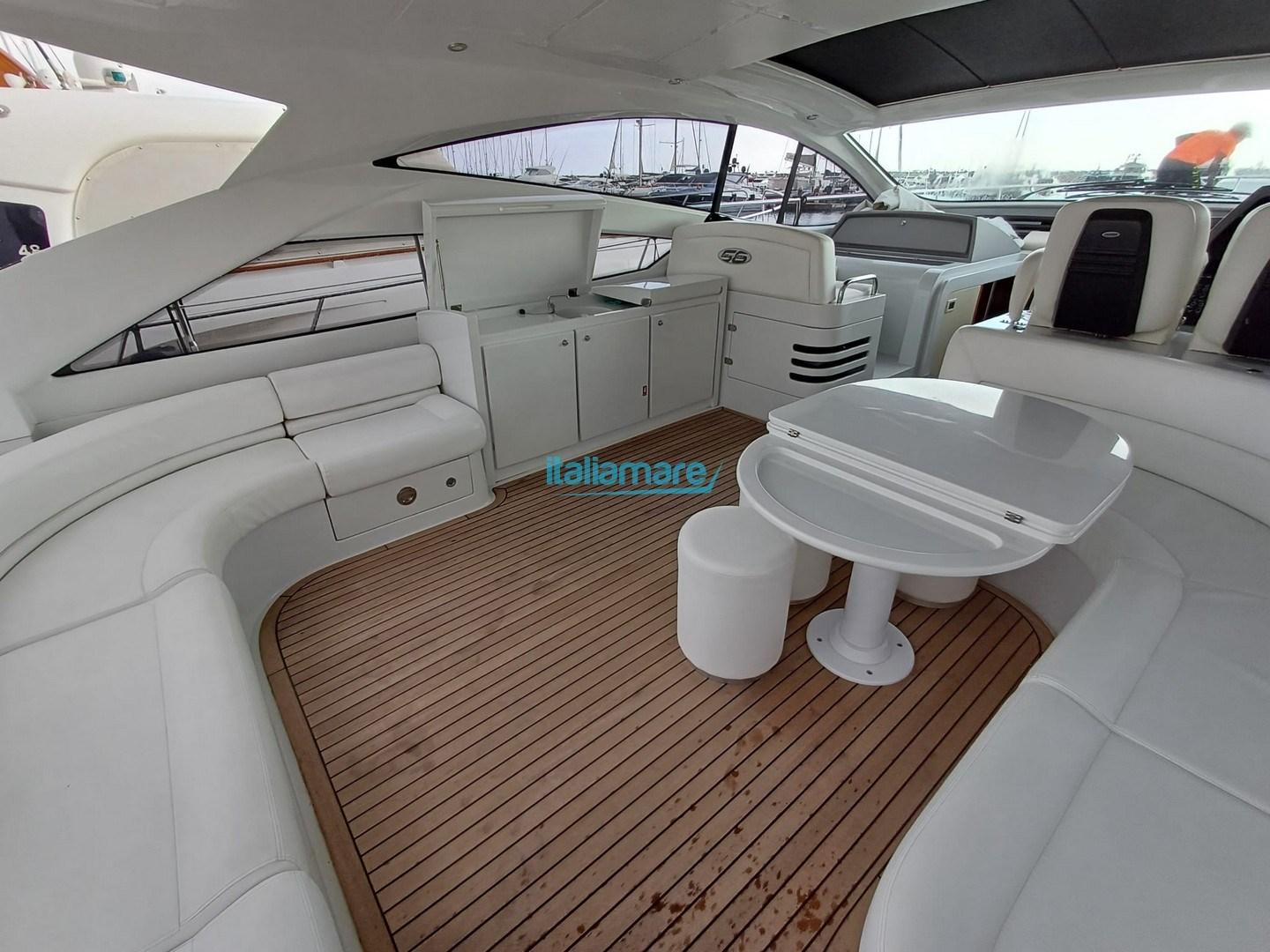 Alarme moteur, Alarme de pompe de cale, Eau sous pression, Couleur spéciale, Douche de cockpit, Flaps hydrauliques, Garage à annexe, Hard top, Extincteur(s) fixe(s), Compresseur de plongée, Indicateurs de flaps, Lavage de chaine, Éclairage de courtoisie, Spots sous-marins, Passerelle, Plateforme arrière, Pompe de cale manuelle, Cockpit en teck, Prise de quai, Connexion eau sous pression à quai, Guindeau électrique, Echelle de bain, table de cockpit, Annexe, Winch électrique arrière.