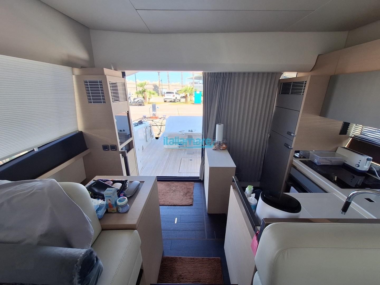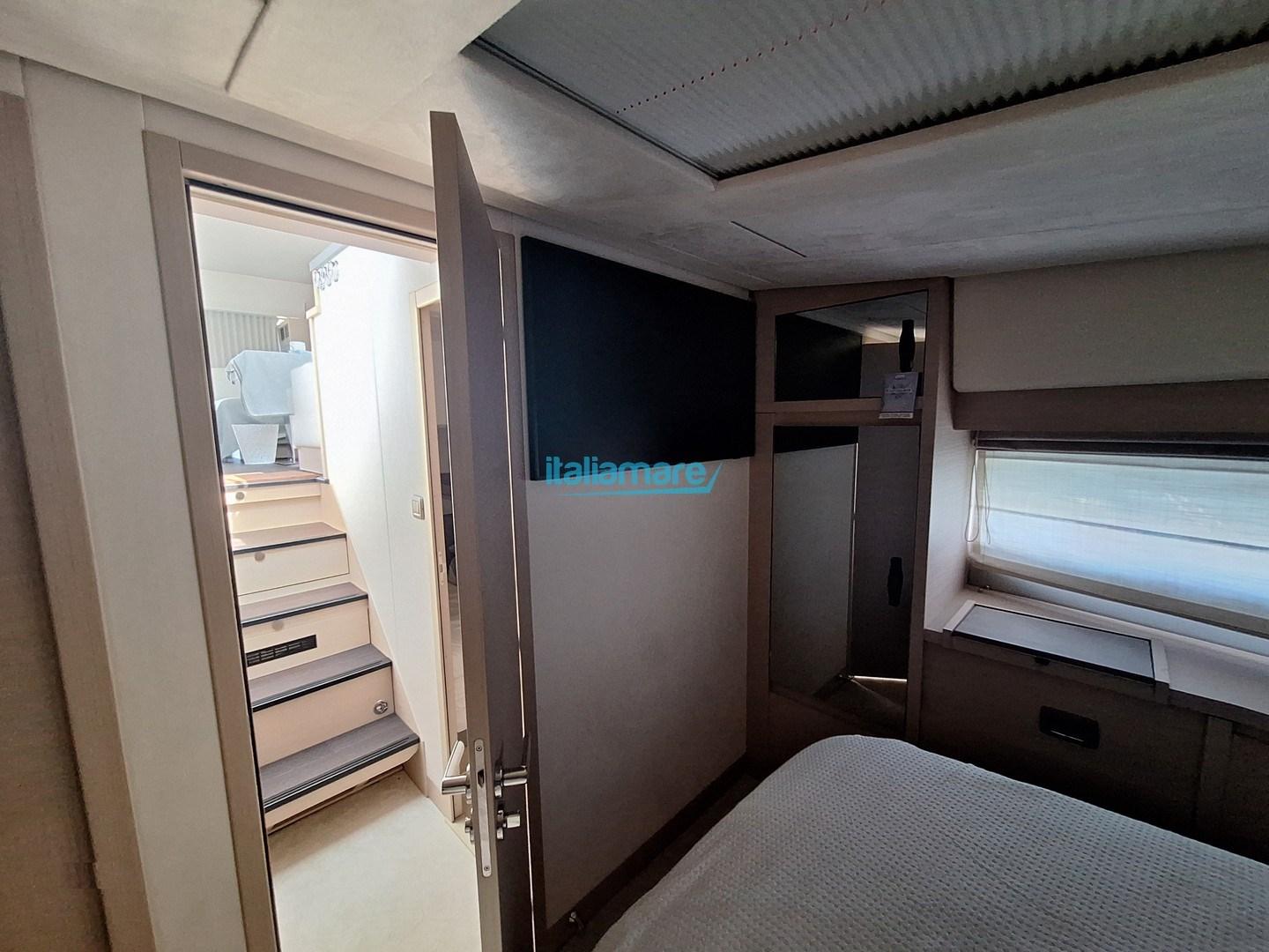 Accessoires principaux : GPS - Générateur - Contrôleur de yacht - Pilote automatique - Propulseur d’étrave - Passerelle - Plate-forme hydraulique - Teck dans le cockpit - Antivol - Climatisation - Dessalinisateur - Onduleur - 5 Caméras - 3 téléviseurs - Système d’amarrage assisté - Ouverture et fermeture à distance de la porte d’entrée