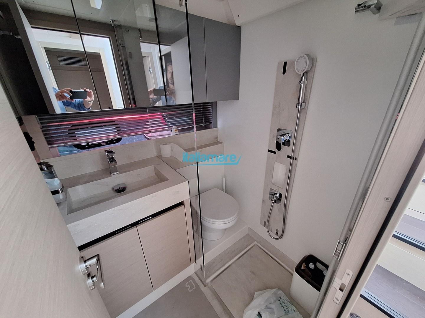 Alarme intrusion (elettronico), Ballon d'eau chaude, Coffre-fort, Air Conditionné, Connexion à internet, Contrôleur domotique, Dessalinisateur, Cuve à eaux noires, Prises interieures 12v, Prises interieures 220v, 5 Caméra vidéo, 2 Toilettes électriques, Toilettes manuelles.