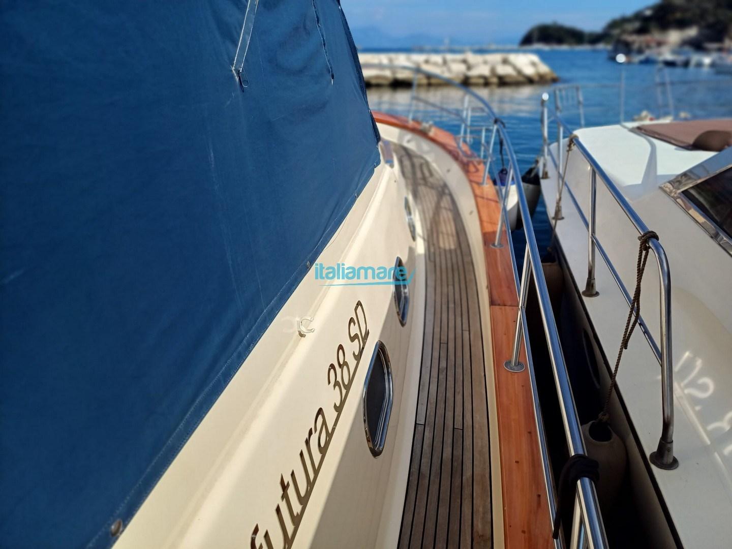 Le Futura 38 est un yacht à moteur de 11,50 mètres au style à la fois classique et moderne, conçu pour une croisière confortable dans la tradition des gozzos côtiers.
