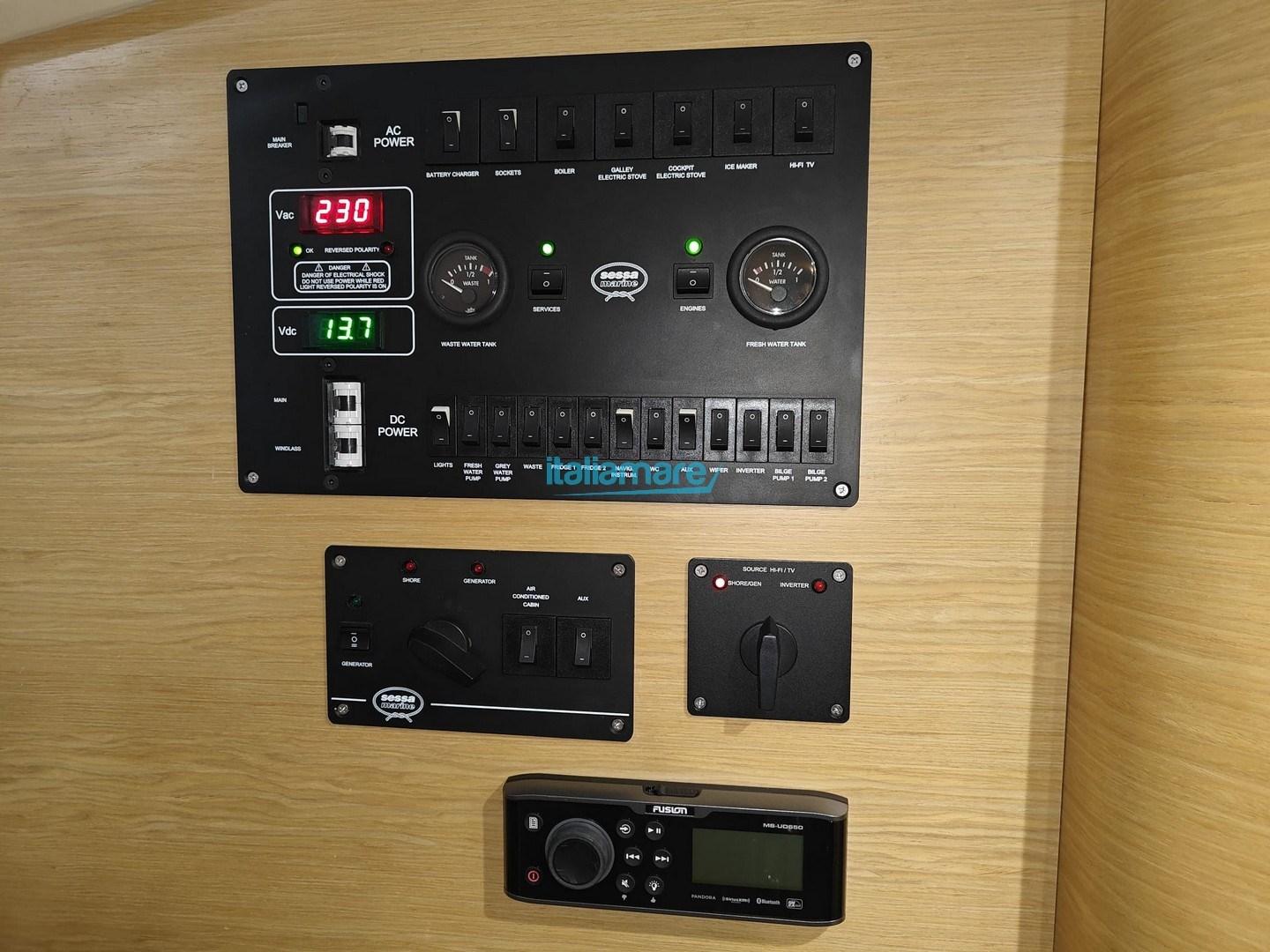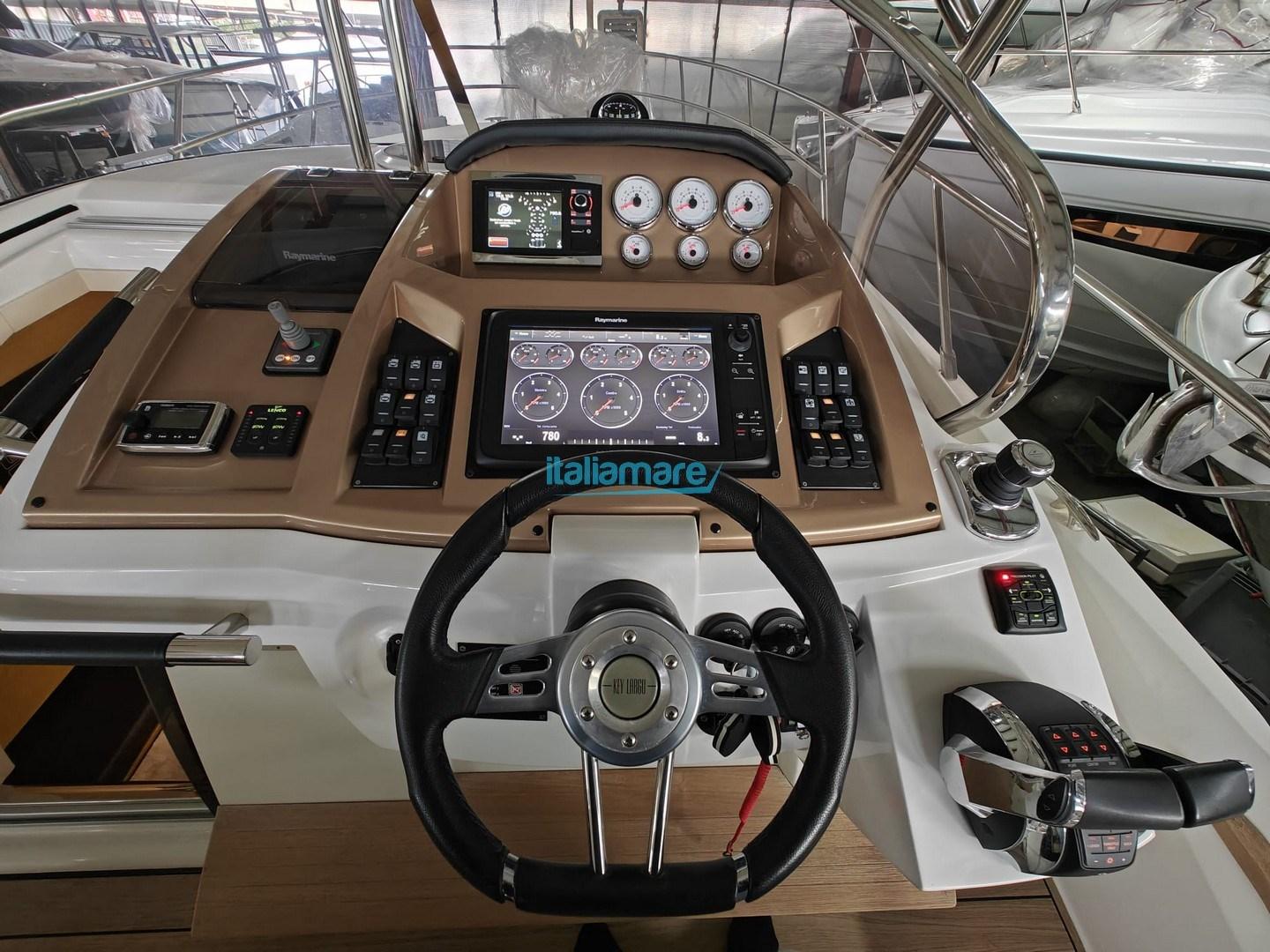 Alarme moteur, Alarme de pompe de cale, Eau sous pression, Trim hydraulique, 5 Batteries, Passavant en teck, Douche de cockpit, Phare de poursuite, Flaps électriques, Hard top, Extincteur(s) fixe(s), Indicateurs de flaps, Éclairage de courtoisie, Spots sous-marins, Pompe de cale automatique, Pompe de cale manuelle, Porte latérale, Cockpit en teck, Prise de quai, Guindeau électrique, Echelle de bain, table de cockpit, T-Top.