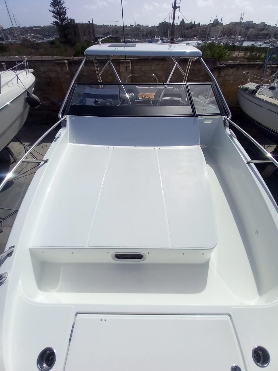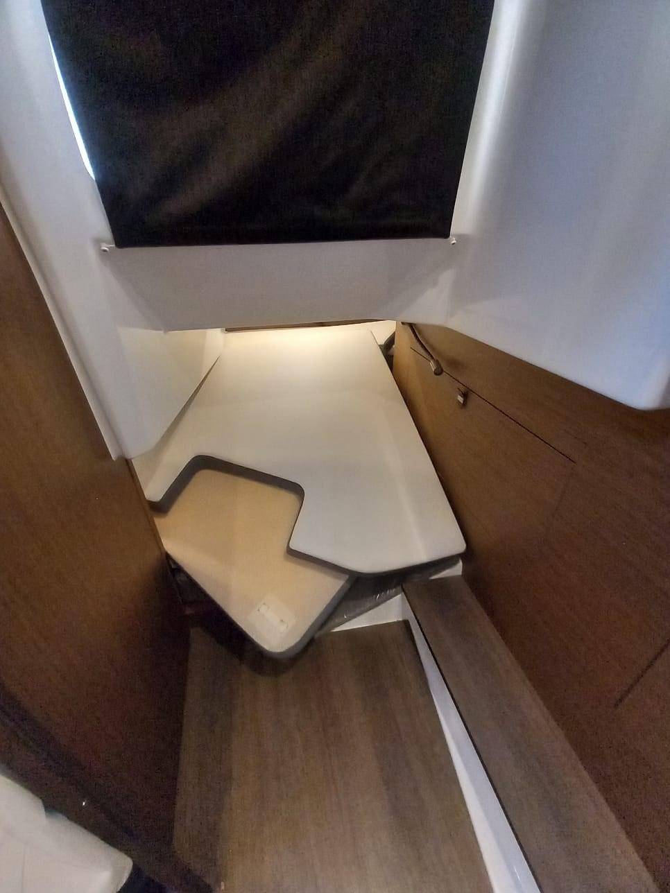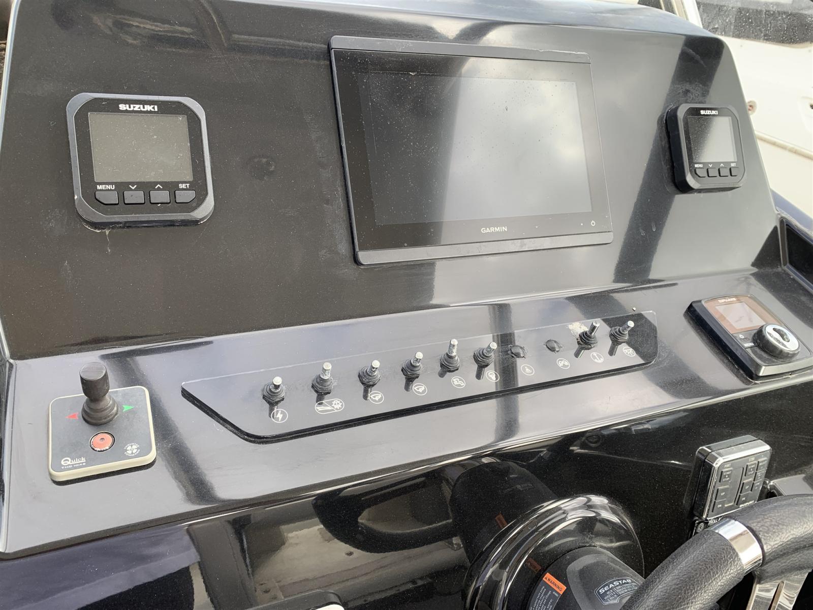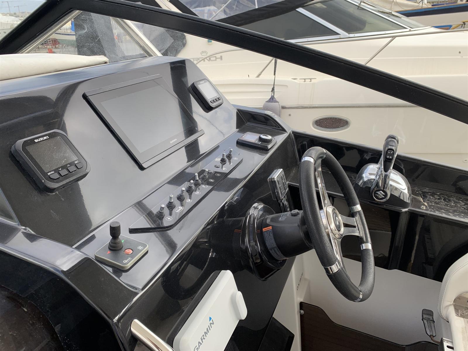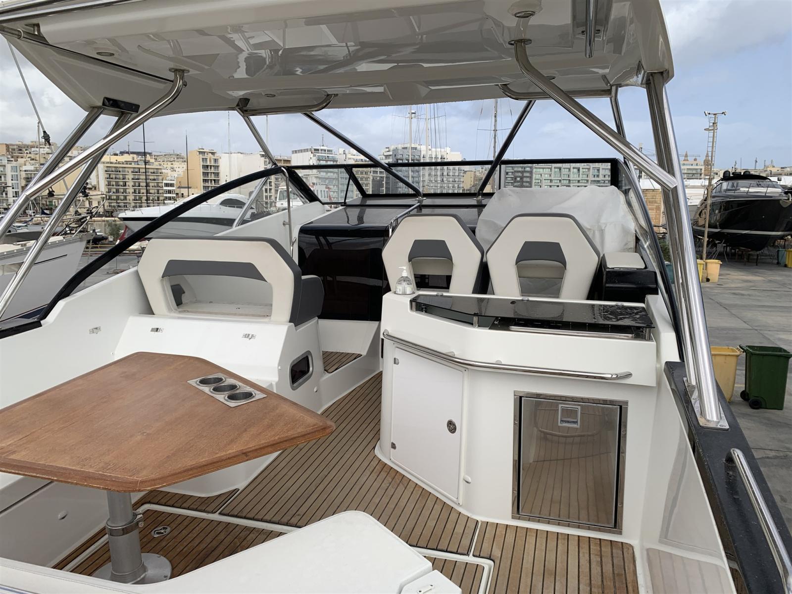 Eau sous pression, Douche de cockpit, Éclairage de courtoisie, Plateforme arrière, Pompe de cale automatique, Onduleur, Rollbar, Guindeau électrique, Echelle de bain, table de cockpit, Corne.