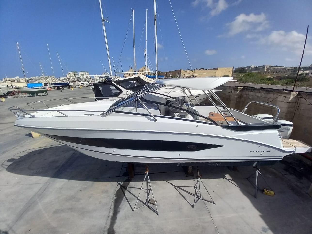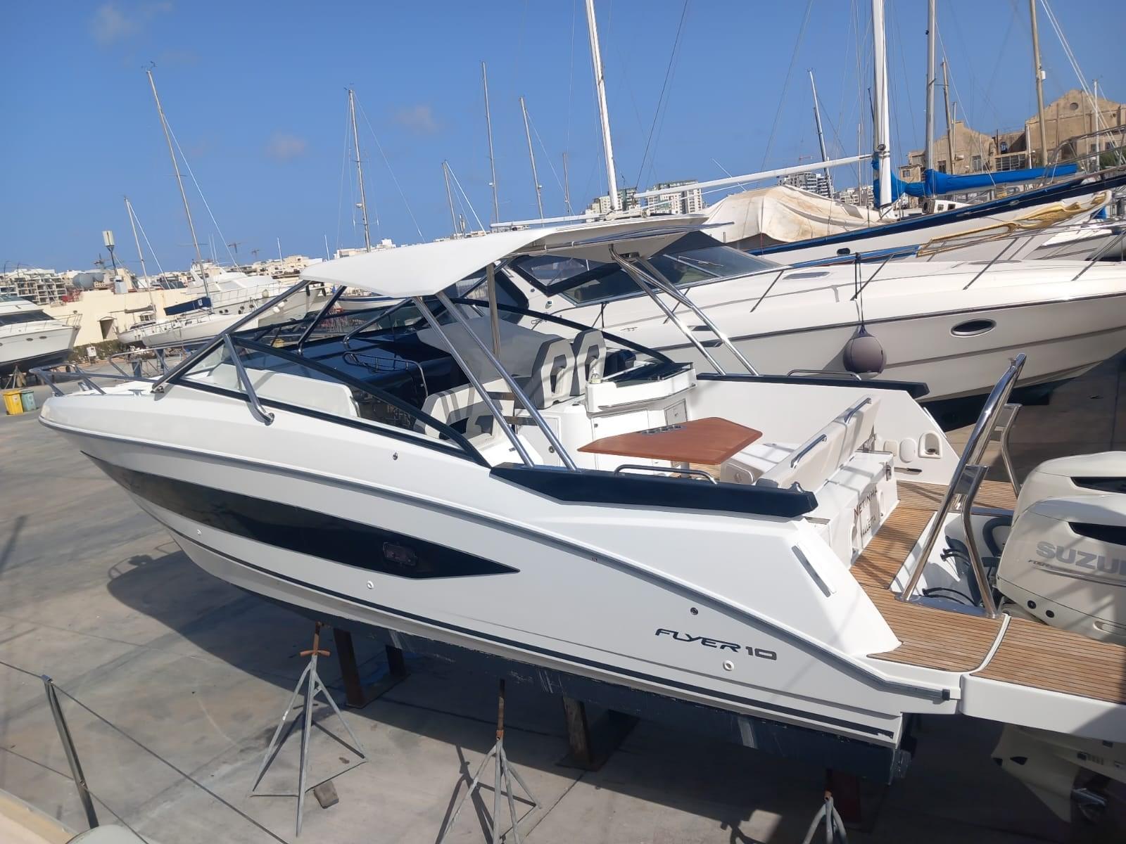 Vaisseau amiral de la gamme, le Flyer 10 dissimule un véritable bateau à moteur de vivier derrière un concept de dayboat. Élégant et sportif, ce grand bateau hors-bord à moteur offre plus de sensations fortes et quatre grands espaces de vie, pour le plaisir de tous !