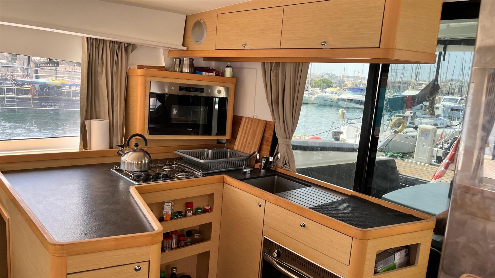 Lagoon 42 est un multicoque de croisière à voile de 12,80 mètres avec 4 cabines invités et 4 salles de bain, un tirant d’eau de 1,25 mètre. Le yacht a une coque en fibre de verre / grp avec une classe de certification CE (A) et peut naviguer en pleine mer.
