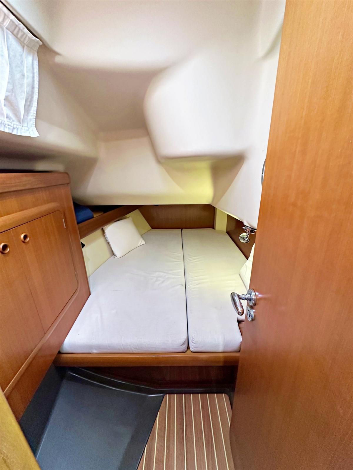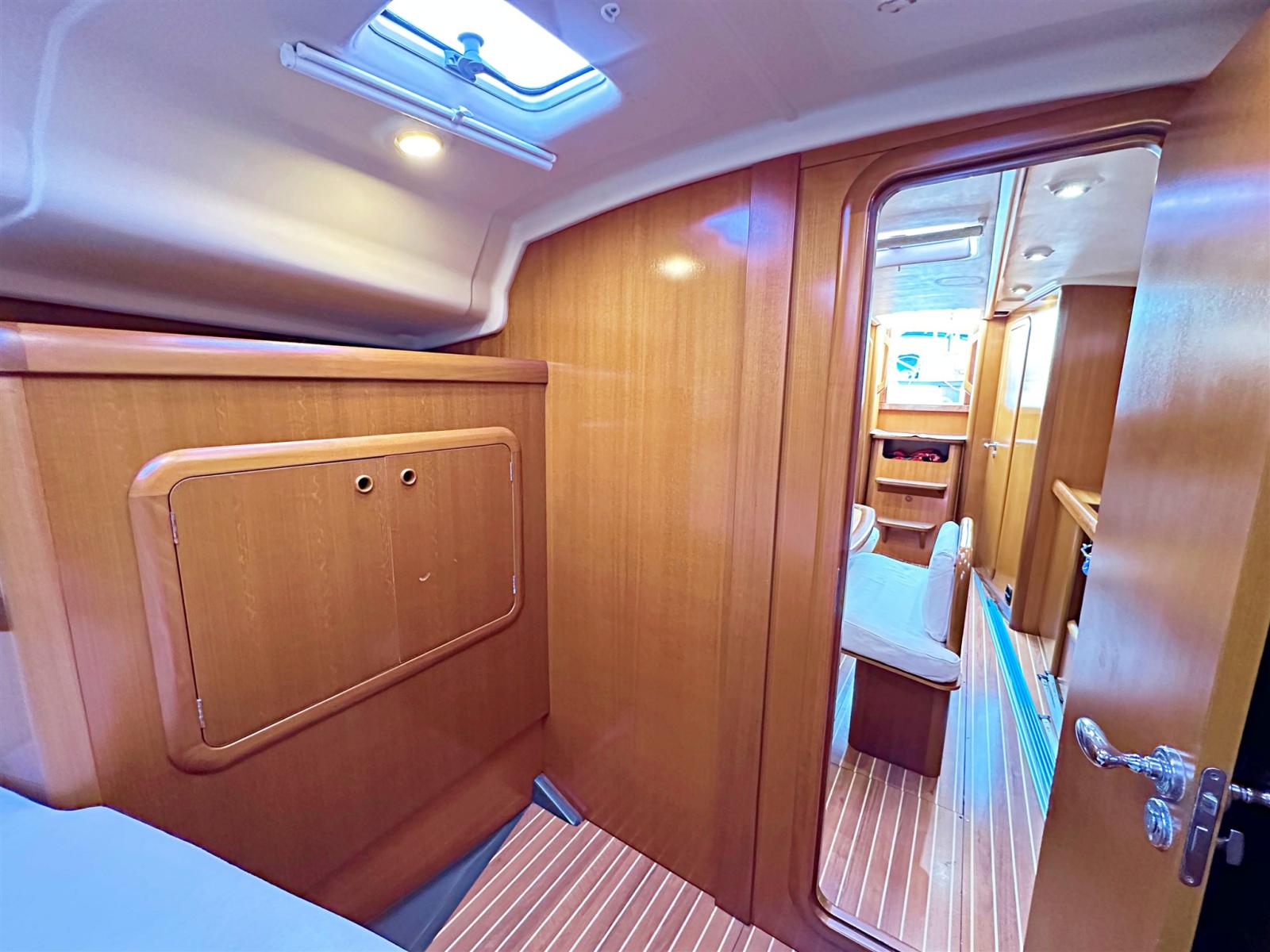2 cabines, 1 salle d’eau séparée, WC électrique. Instrumentation Raymarine complète avec radar 2021. Passerelles en teck. Cockpit en teck. Échauffement Webasto. Batterie moteur 2023. Bulbe en plomb. Écoute de grand-voile allemande (rentrée dans le cockpit). Panneaux solaires 2024. Tendeur hydraulique de pataras Arbre en aluminium 3 niveaux de croix. Poteau de spi/bout-dehors en carbone.