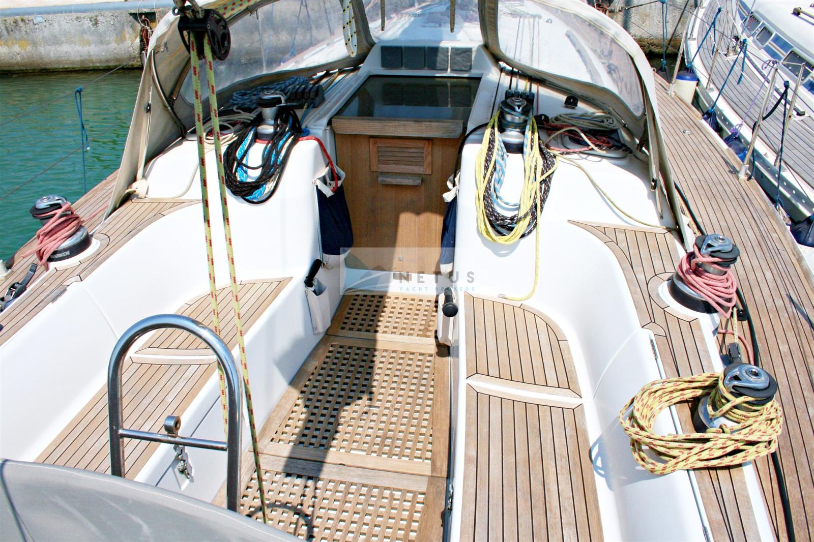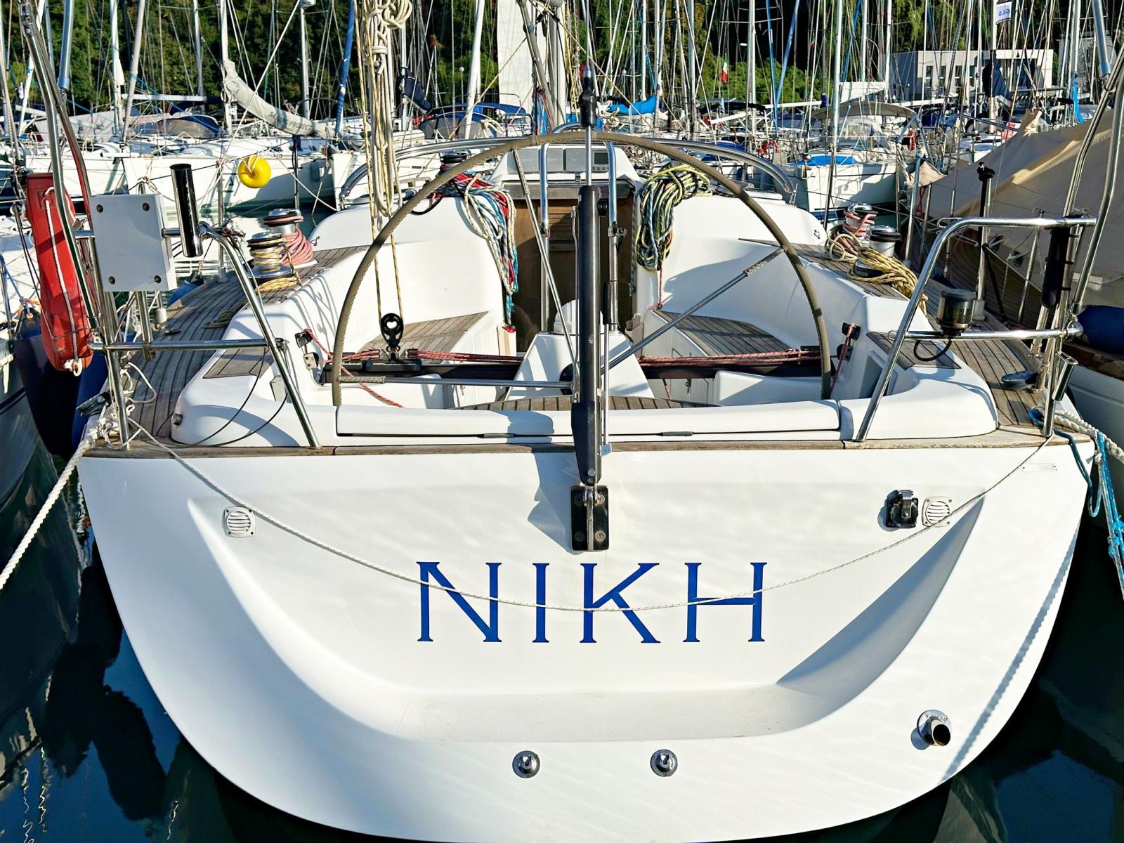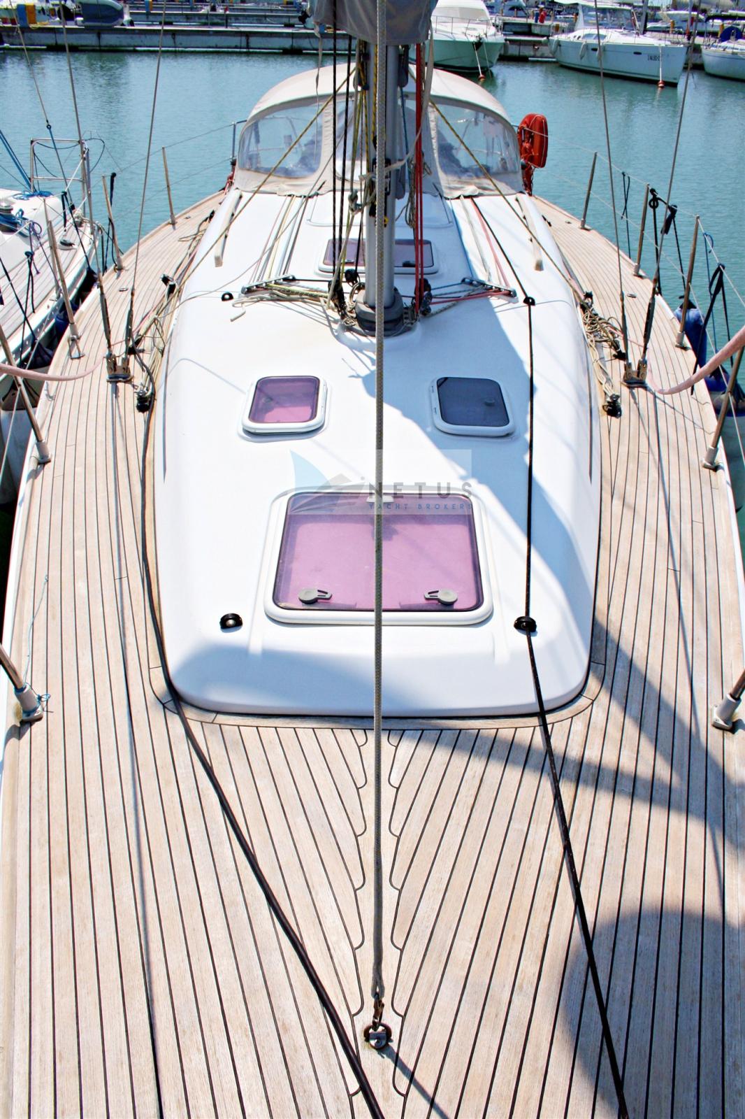 Eau sous pression, Radeau de sauvetage (6 pax. Da revisionare), 3 Batteries (100 Ah), Passavant en teck, Chargeur de batterie (Quick), Douche de cockpit, Panneau solaire, Pompe de cale manuelle, Cockpit en teck, Prise de quai, Guindeau électrique, Gréement Rod, Echelle de bain, Chaise support HB, 6 Winch, Windex.