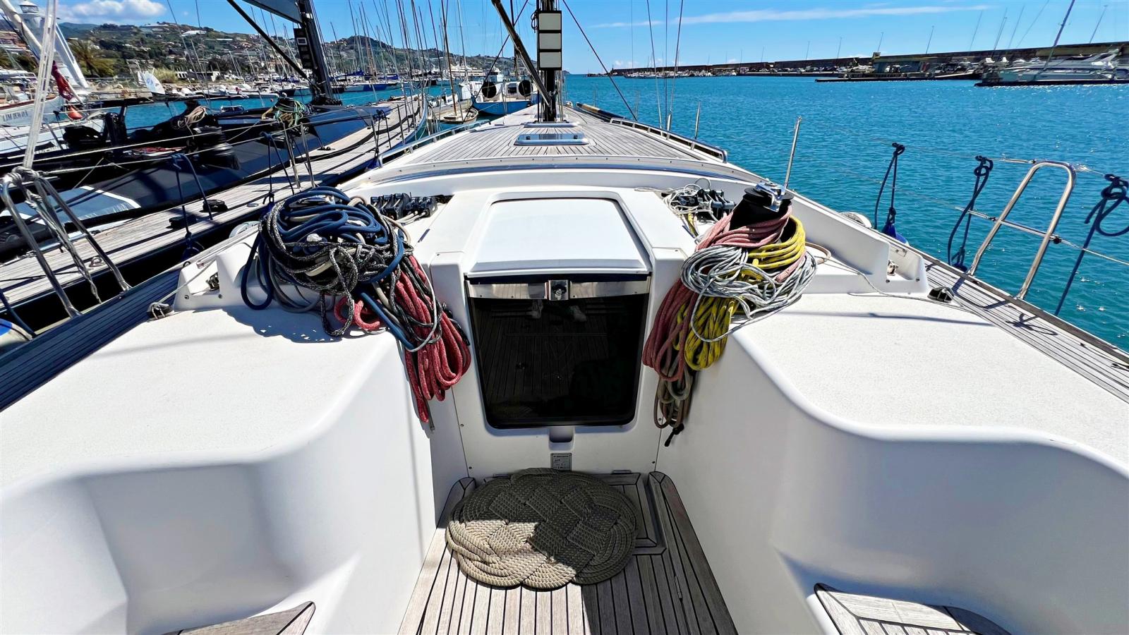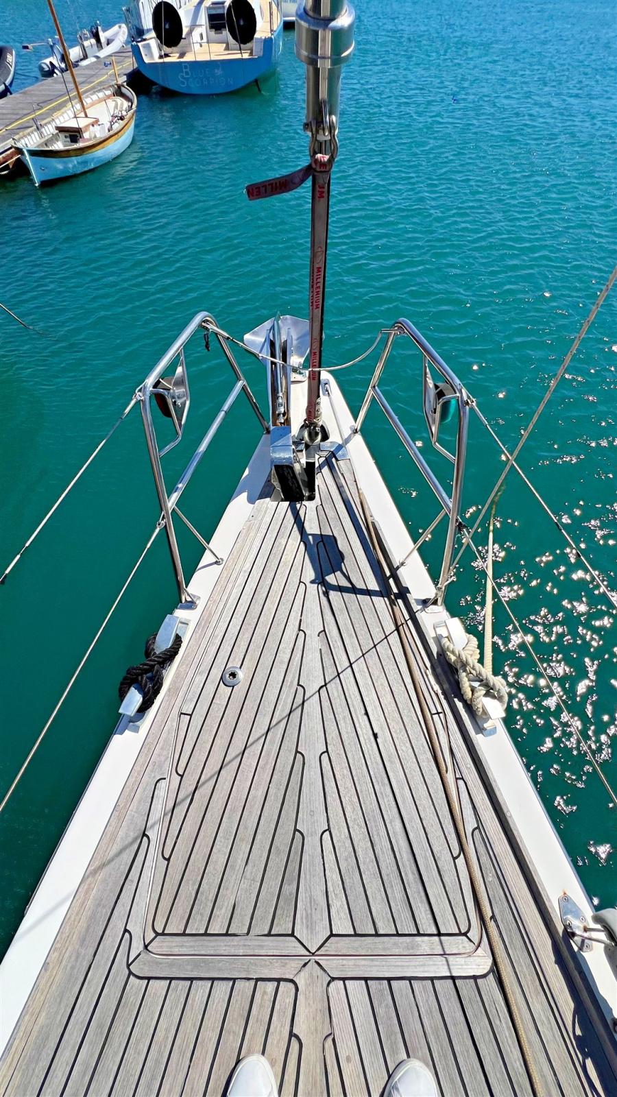 Mât en carbone Southern Spars. Cric de mât. Barrage de carbone de Park Avenue. Bâton en carbone d’avant-garde. Gréement rond. Tuff Luff et enrouleur. N.2 treuils de drisse manuels. N.2 treuils primaires électriques. N.1 treuil électrique de grand-voile. N.1 treuil de grand-voile manuel.