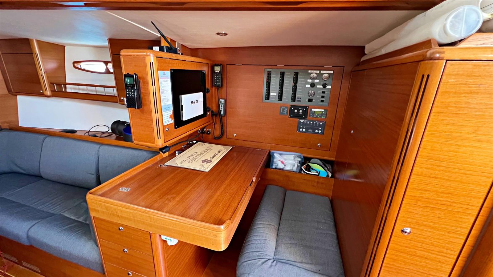 AIS (Simrad), 3 Compas, Ordinateur fixe de bord (B&G+ASTRA YACHT), Loch (B&G), Sondeur pêche (B&G), Loch (B&G), Pilote automatique (SIMRAD), Radar (B&G), Anémomètre/Girouette (B&G).