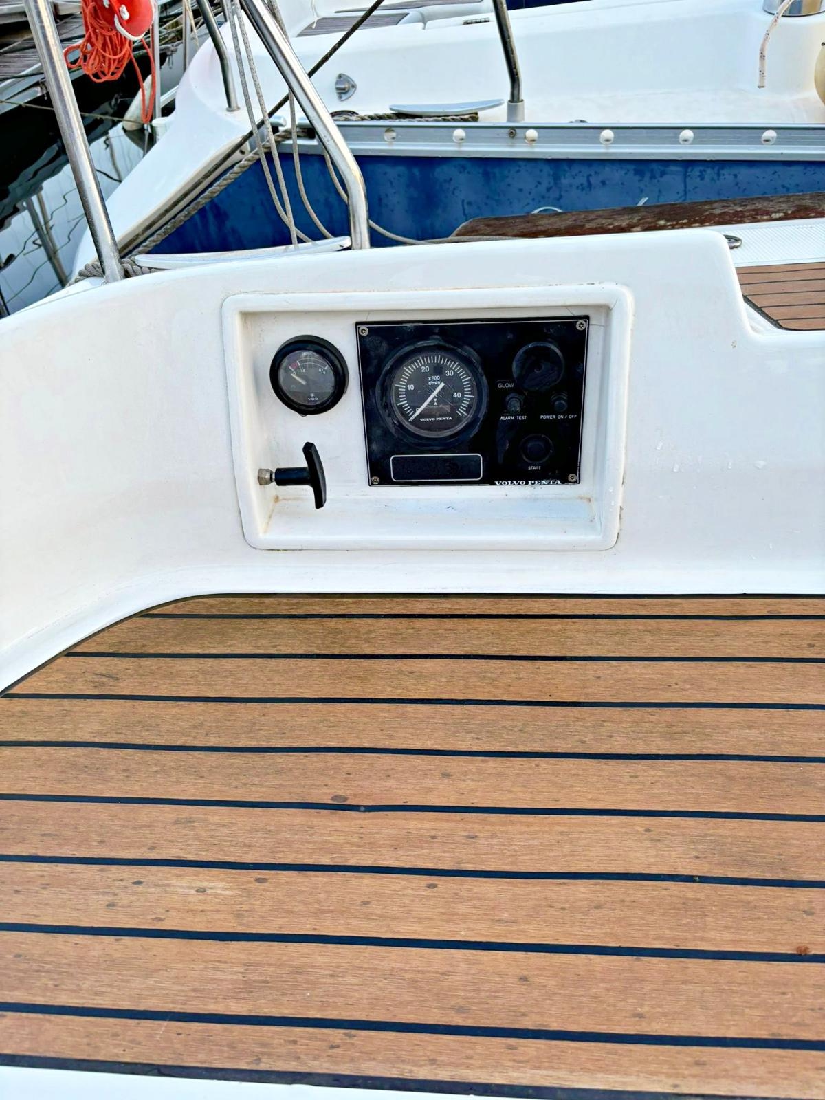 Moteur Volvo Penta 20CV, Sdrive, hélice repliable à 2 pales 2021. Nouveau panneau d’allumage du moteur 2021. Entretien de l’antifouling et du moteur effectués chaque année. Dernière révision moteur et antifouling effectuée en juin 2024. Jeu de direction Sdrive remplacé en 2021.