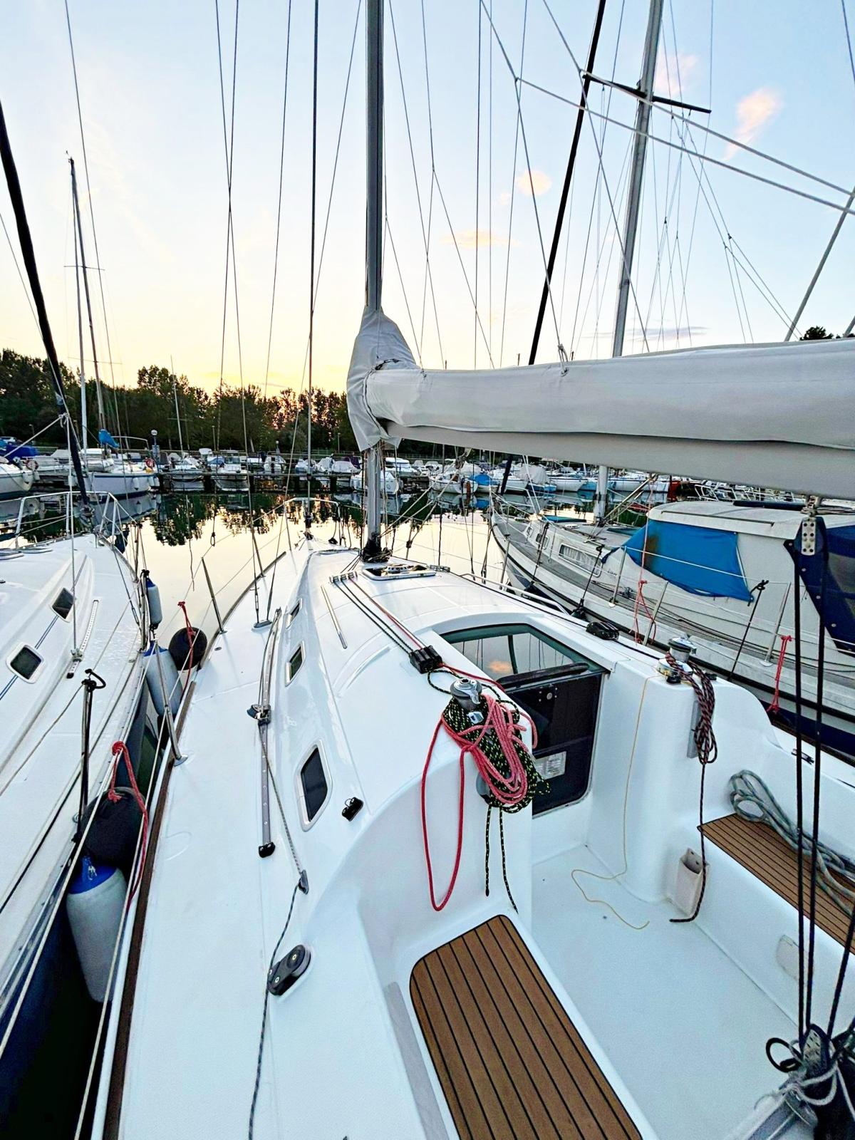 Grand-voile en Dacron en bon état. Génois sur enrouleur en Dacron en bon état. Foc sur enrouleur en Dacron nouveau 2022. Gennaker comme neuf, jamais utilisé.