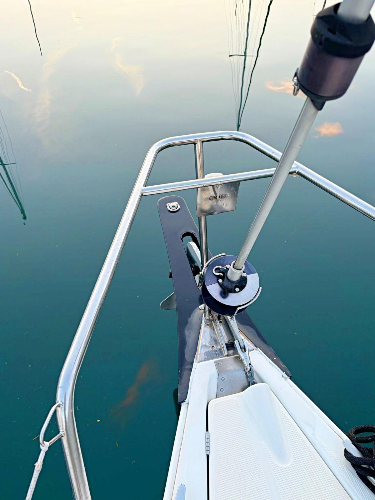 Ancre (2021), Eau sous pression, 3 Batteries (2023), Pompe de cale manuelle, Cockpit en teck (2023), Prise de quai, Guindeau électrique, Gréement monotoron, Echelle de bain, 4 Winch, Windex.
