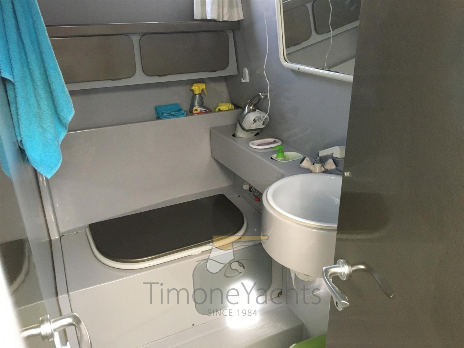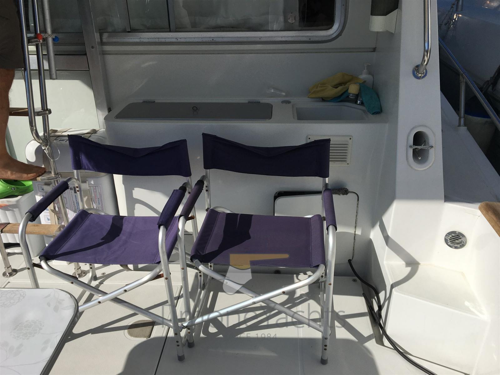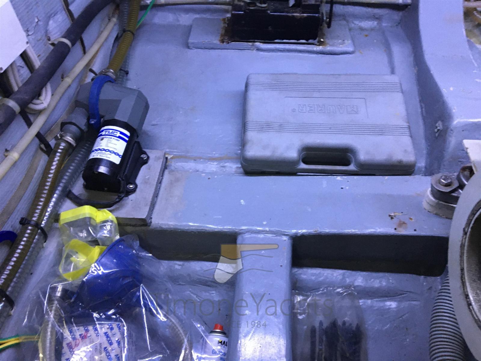 Eau sous pression, Douche de cockpit, Double barre à roue, Flaps hydrauliques, Plateforme arrière, Pompe de cale automatique, Prise de quai, Connexion eau sous pression à quai, Onduleur, Guindeau électrique, Echelle de bain, table de cockpit.