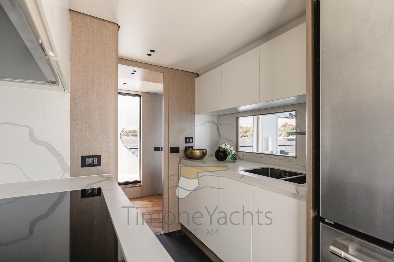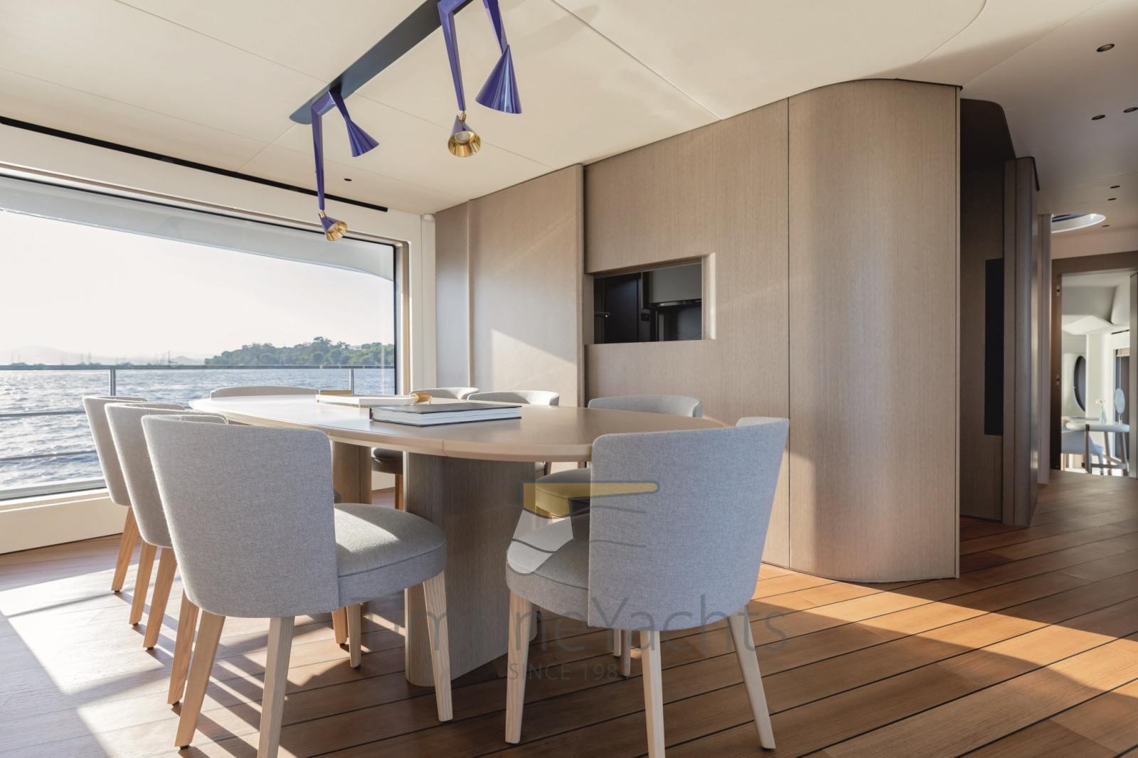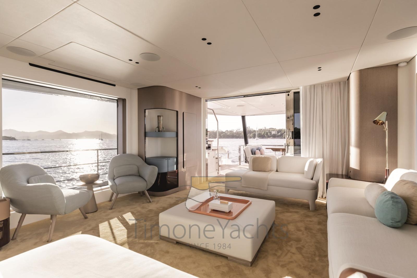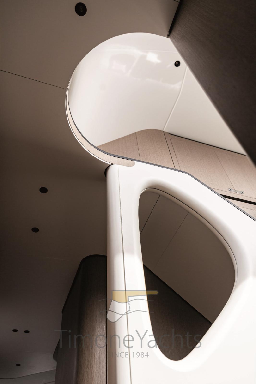 Une disposition fluide répartie sur plusieurs niveaux offre un sentiment de grande liberté en favorisant un dialogue intime avec la mer environnante, comme la zone cockpit qui, grâce à l’innovant pont 2, peut être agrandie pour créer une terrasse luxueuse. Les espaces ultra-fonctionnels offrent une parfaite séparation entre l’équipage et les invités, garantissant une intimité totale et créant une atmosphère sophistiquée inspirée du monde des superyachts.