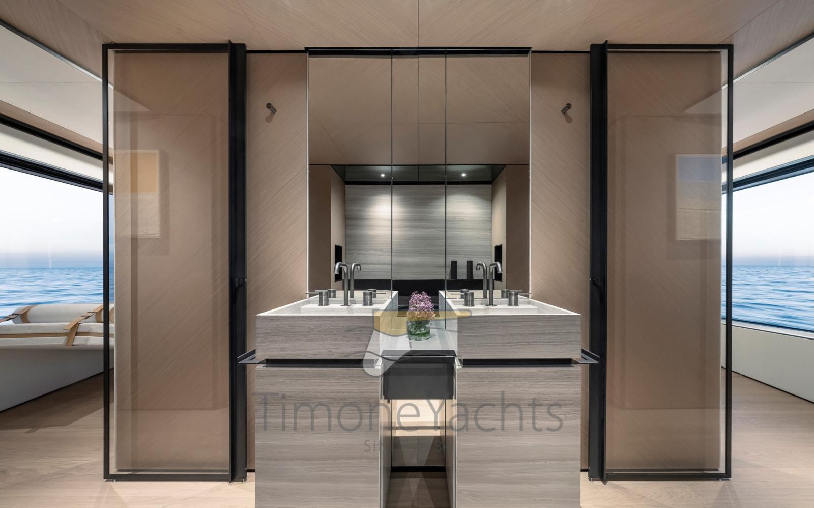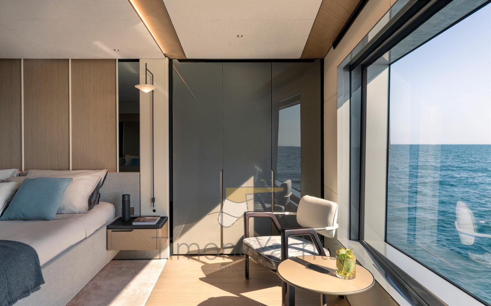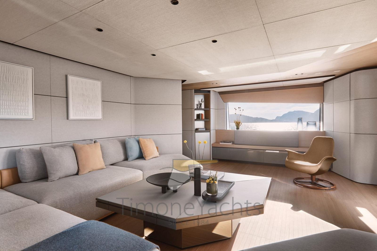 Ensemble, les quatre terrasses totales qui s’étendent sur la mer créent un effet hautement dynamique et immersif, révolutionnant la division traditionnelle des espaces à bord d’une manière contemporaine mais absolument inattendue.