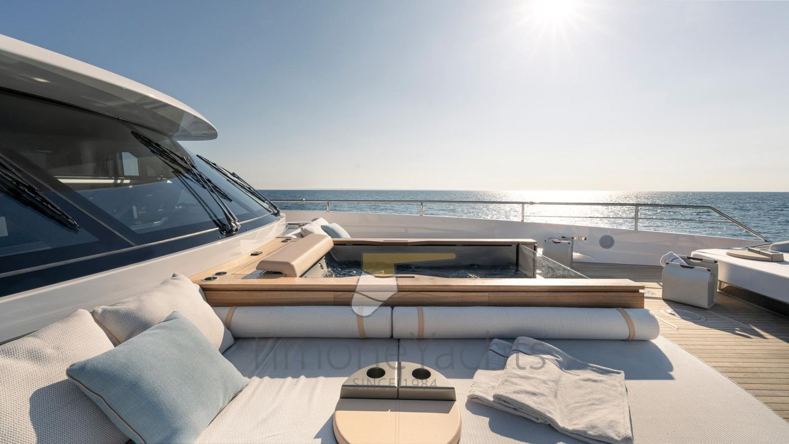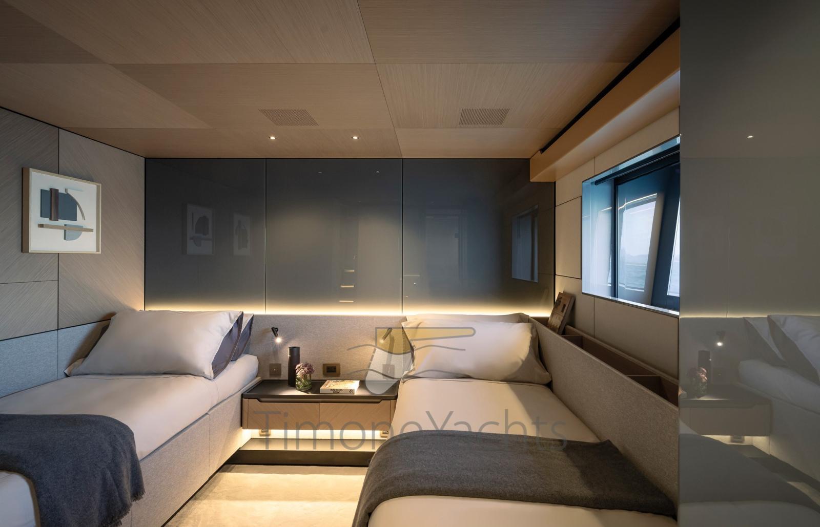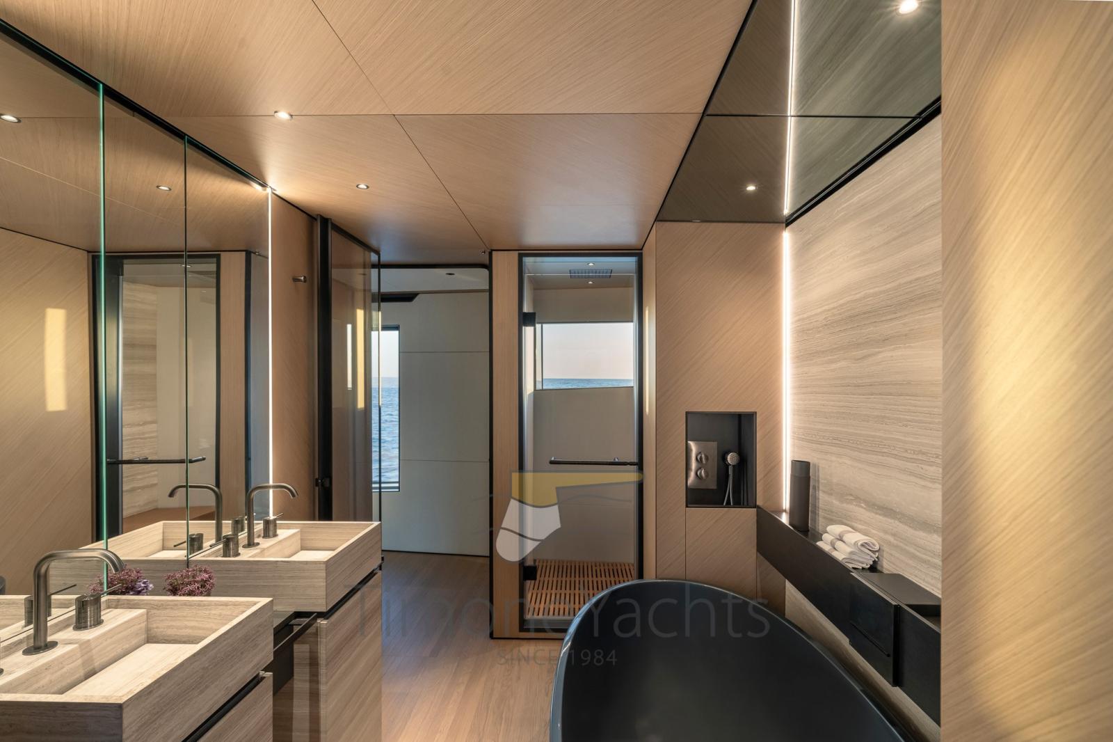 Ensemble, les quatre terrasses totales qui s’étendent sur la mer créent un effet hautement dynamique et immersif, révolutionnant la division traditionnelle des espaces à bord d’une manière contemporaine mais absolument inattendue.