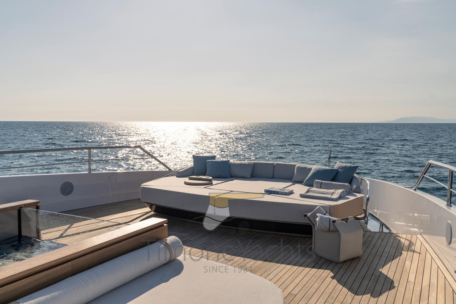 La Sea View Terrace, une véritable scène sur la mer, a été créée pour admirer la vue d’un point de vue unique et privilégié, suspendue au-dessus du spectacle de l’eau. En même temps, le pont supérieur est l’endroit idéal pour la détente et le bain de soleil, tandis que le pont supérieur en dessous abrite l’espace principal de convivialité extérieur. Enfin, la plage à la poupe : la caractéristique idéale entre les invités à bord et la nature environnante.