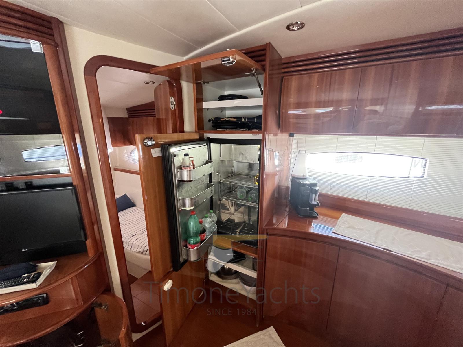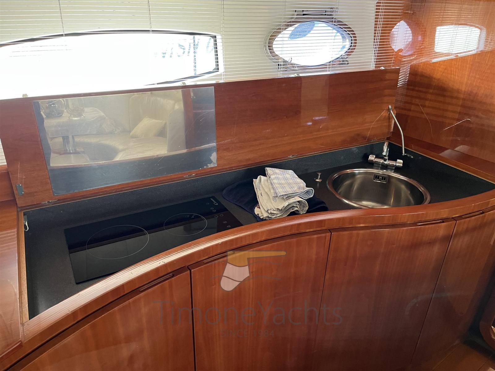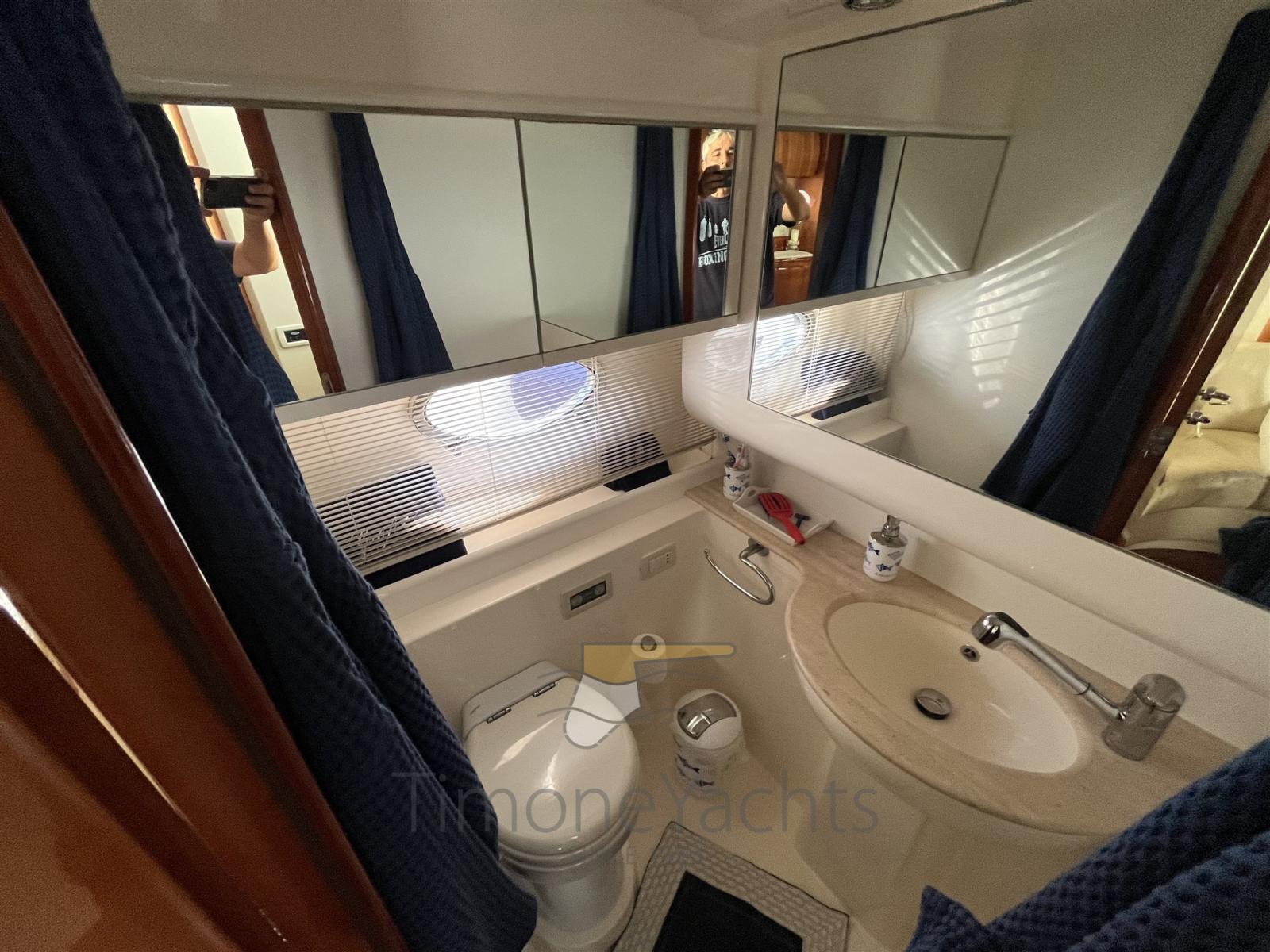 Alarme moteur, Alarme de pompe de cale, Eau sous pression, Douche de cockpit, Flaps hydrauliques, Hard top, Extincteur(s) fixe(s), Indicateurs de flaps, Lavage de chaine, Éclairage de courtoisie, Spots sous-marins, Passerelle, Plateforme arrière (teak), Pompe de cale automatique, Pompe de cale manuelle, Cockpit en teck, Prise de quai, Connexion eau sous pression à quai, Guindeau électrique, Echelle de bain, table de cockpit, Corne, Winch électrique arrière, Winch électrique avant.