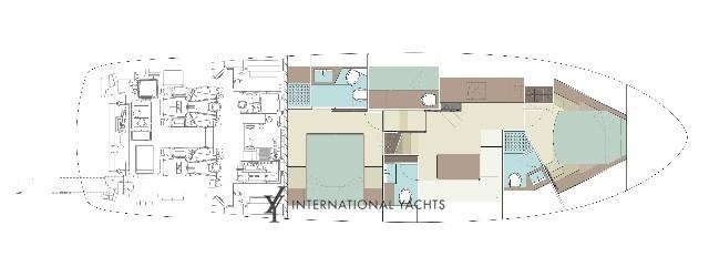 Alarme moteur, Eau sous pression, Flaps hydrauliques, Extincteur(s) fixe(s), Indicateurs de flaps, Passerelle, Plateforme arrière, Pompe de cale automatique, Cockpit en teck, Prise de quai, Connexion eau sous pression à quai, Guindeau électrique, Corne.