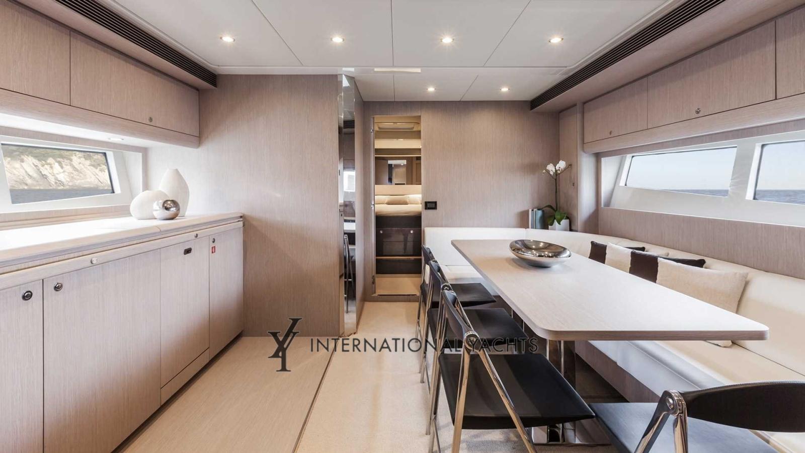 Alarme moteur, Eau sous pression, Flaps hydrauliques, Lavage de chaine, Passerelle, Plateforme arrière, Pompe de cale automatique, Cockpit en teck, Prise de quai, Connexion eau sous pression à quai, Guindeau électrique, Echelle de bain, table de cockpit, Corne.