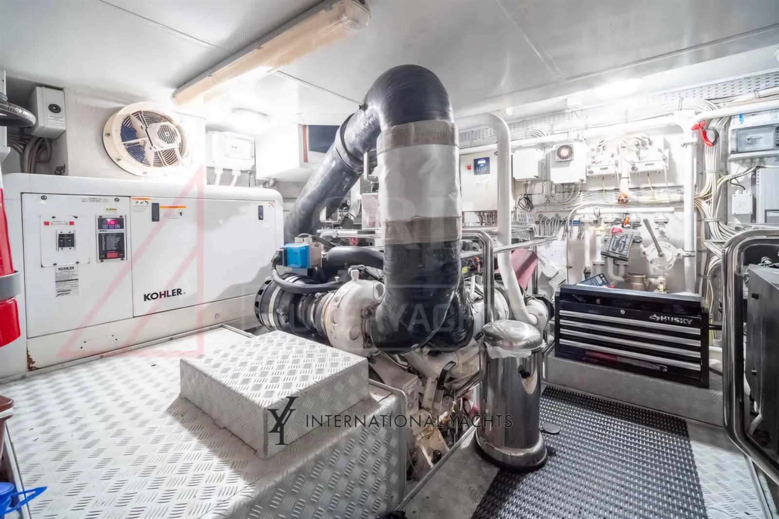 Passavant en teck, Garage à annexe, Hard top (Sul flybridge), Passerelle, Plateforme arrière, Porte latérale, Cockpit en teck, Prise de quai, Connexion eau sous pression à quai, Guindeau électrique, Echelle de bain, 2 Stabilisateurs (Seakeeper), Annexe (Williams).