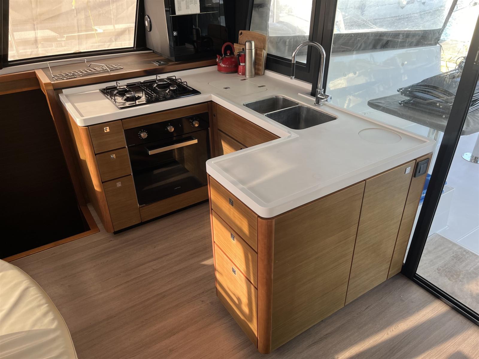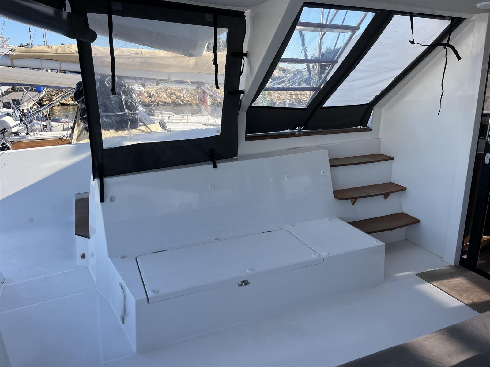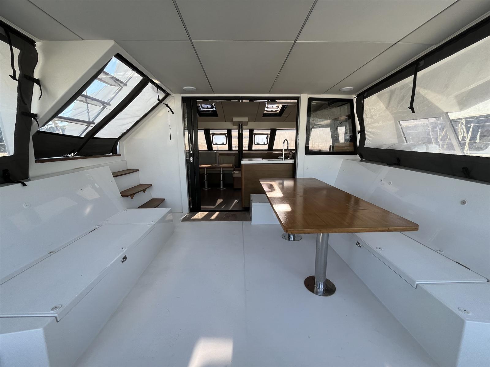 Ballon d'eau chaude, Dessalinisateur (200 l/h), Cuve à eaux noires, Prises interieures 12v, Prises interieures 220v, Réservoir d'eau noire, 4 Toilettes électriques.