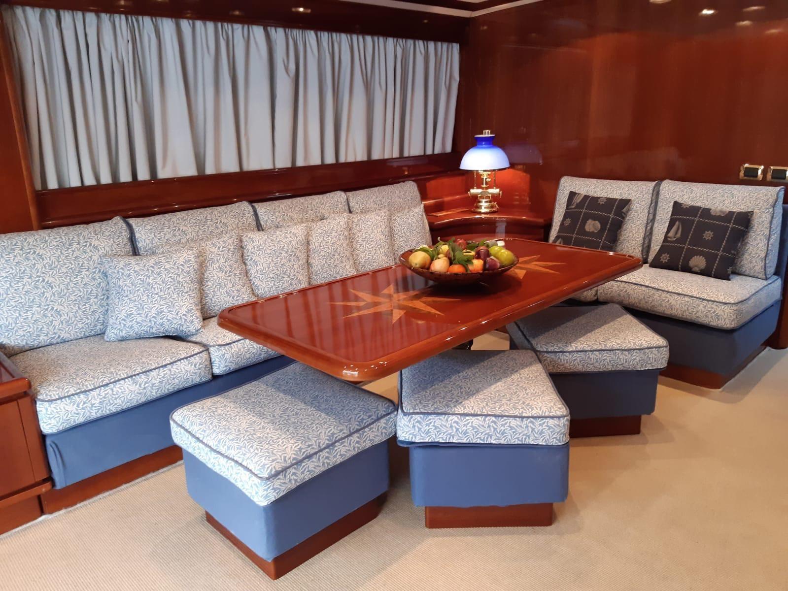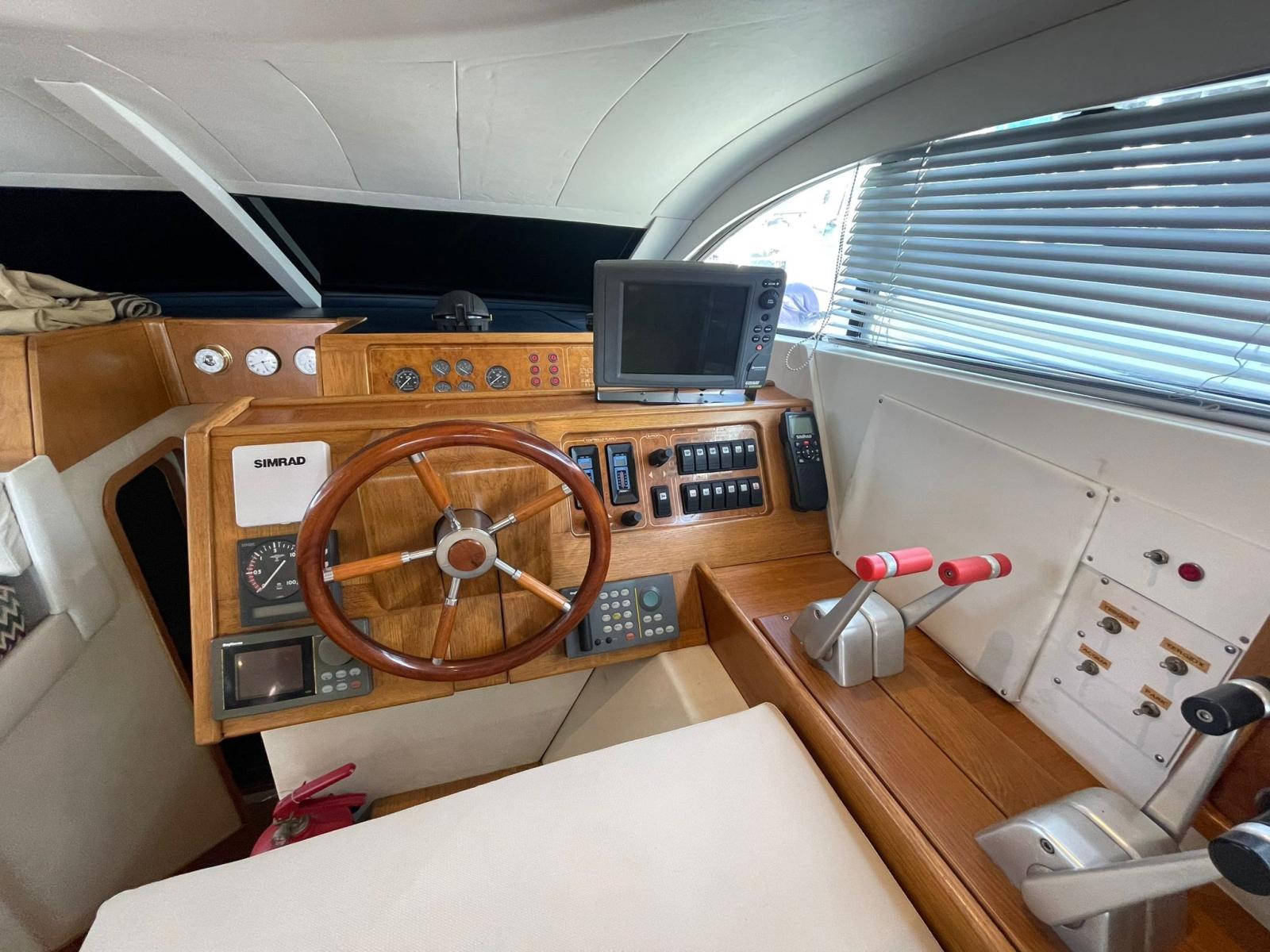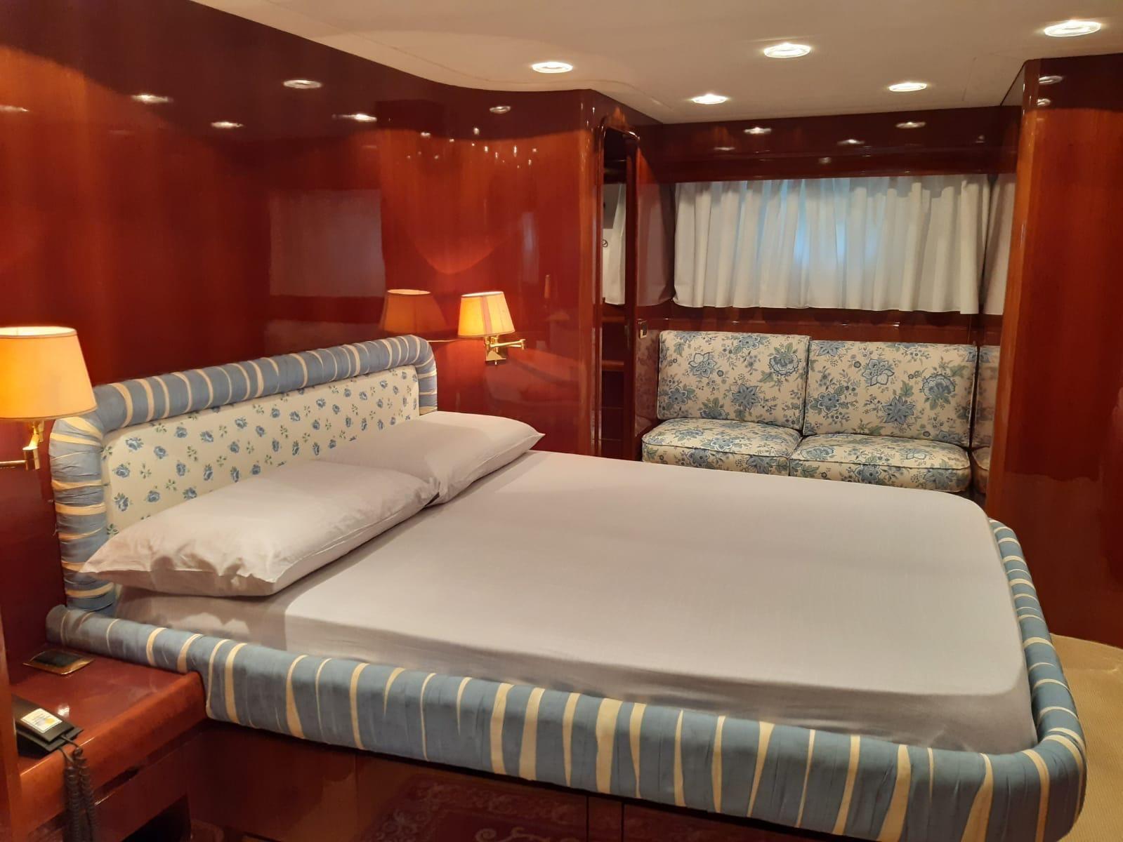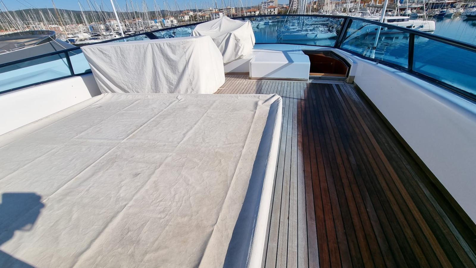 Alarme moteur, Alarme de pompe de cale, Eau sous pression, 2 Radeau de sauvetage (8 persone), 12 Batteries (8 servizi e 4 motori da 220 a), Passavant en teck, Double barre à roue, Phares fixes arrière, Phare de poursuite, Flaps hydrauliques, Extincteur(s) fixe(s), Spots sous-marins, Passerelle, Pompe de cale automatique, Pompe de cale manuelle, Porte latérale, Porte latérale, Cockpit en teck, Prise de quai, Onduleur, Répétiteur électronique, Rollbar, Guindeau électrique, Echelle de bain, table de cockpit, Annexe (4 mt con motore suzuki 40 hp), 2 Winch électrique arrière.