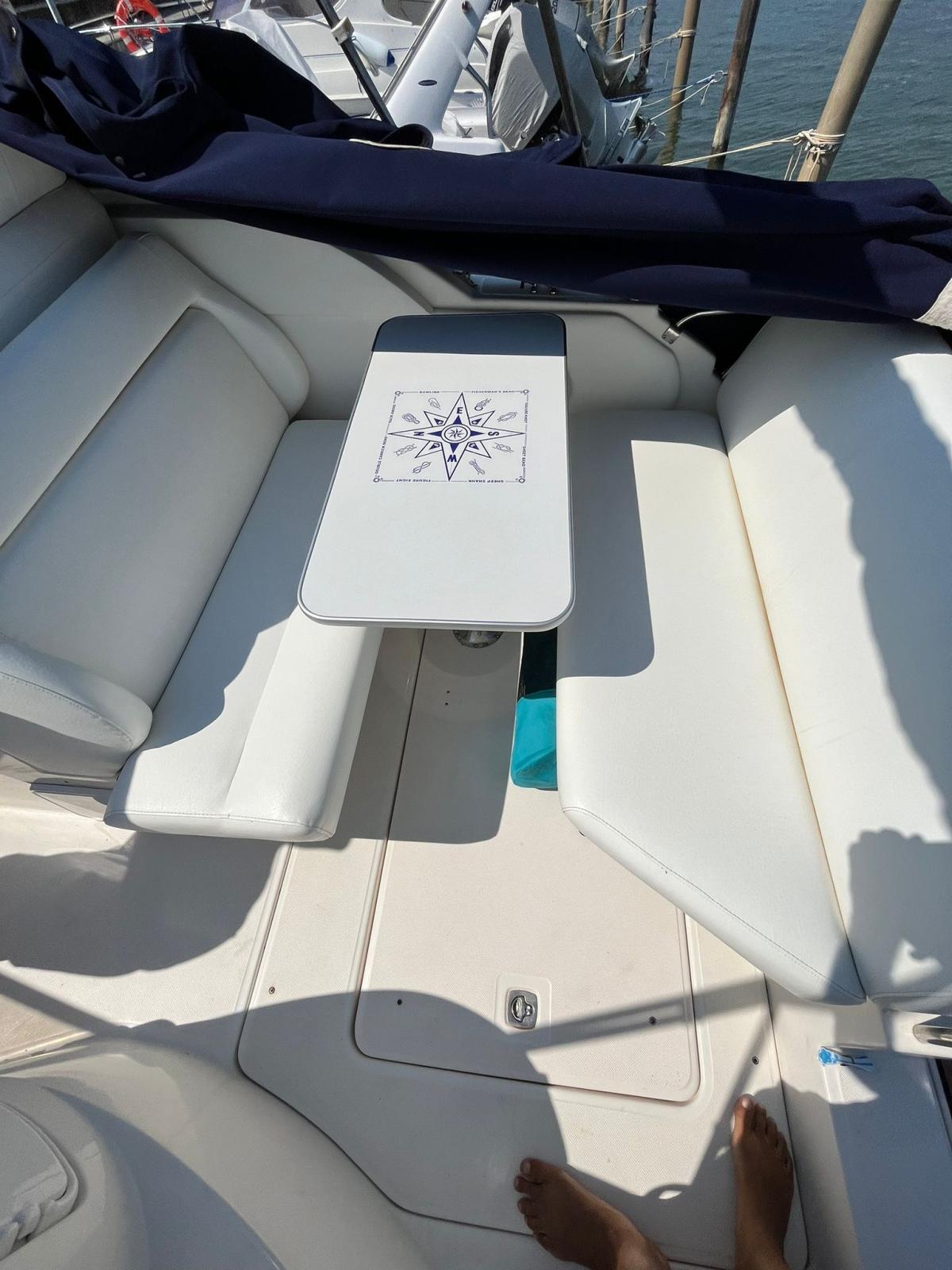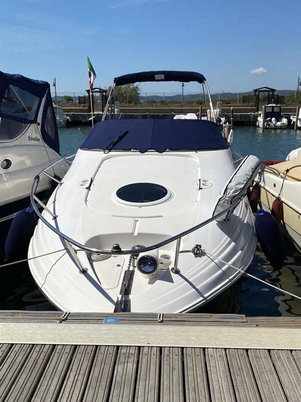 Alarme gaz, Ancre (elettrica), Passavant en teck, Phare de poursuite, Flaps hydrauliques, Éclairage de courtoisie, Spots sous-marins, Cockpit en teck, Guindeau électrique, table de cockpit, Annexe (220 NUOVO, MOTORE 1,5 CV).