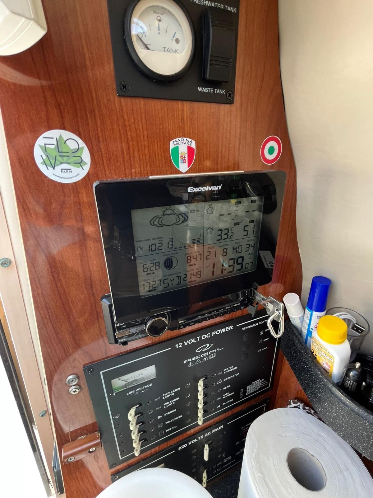 Ballon d'eau chaude, Cuve à eaux noires, Prises interieures 12v, Prises interieures 220v.