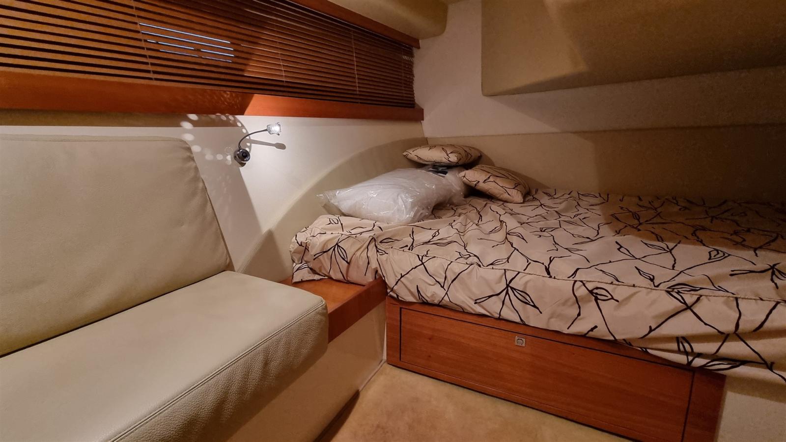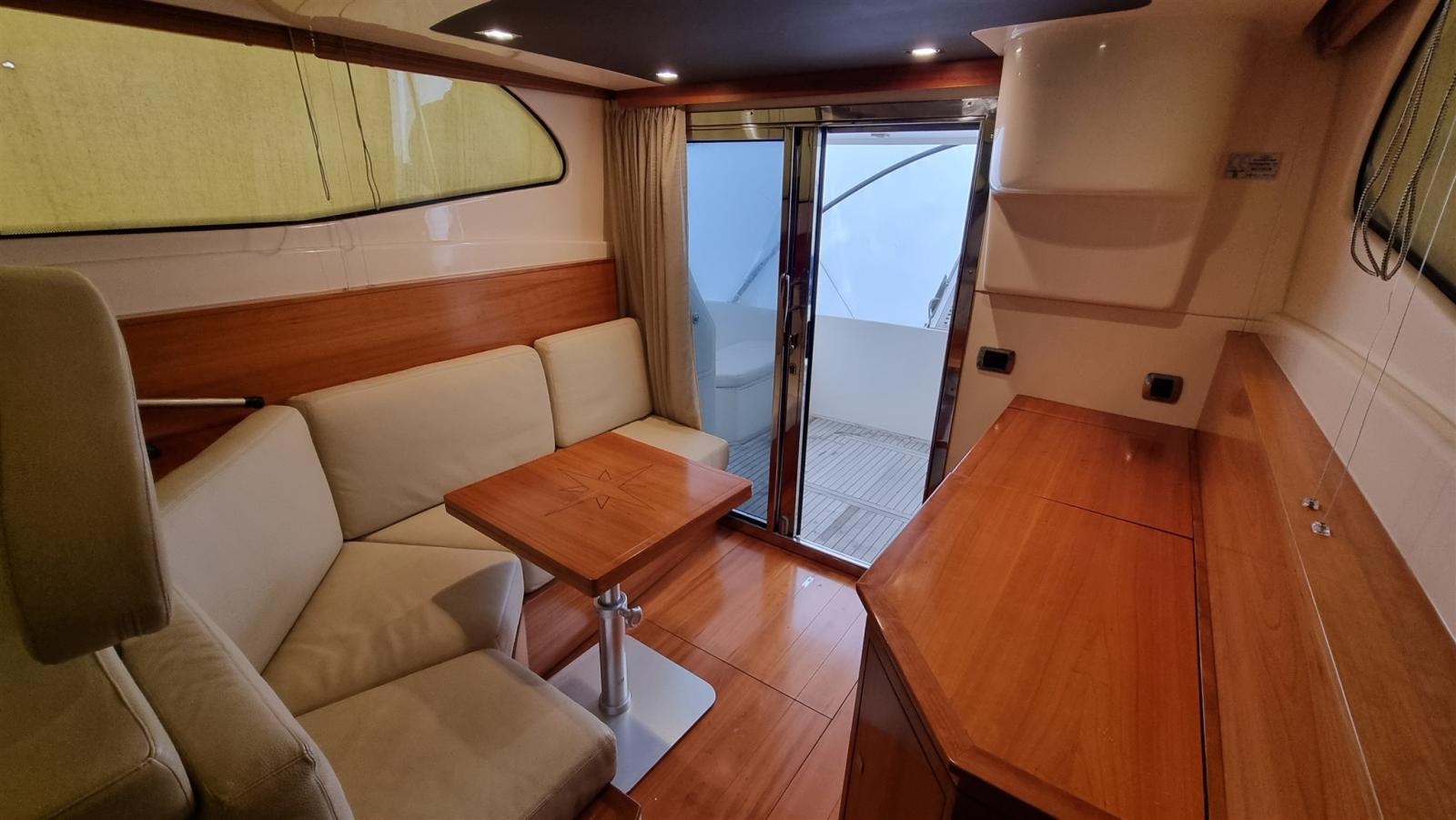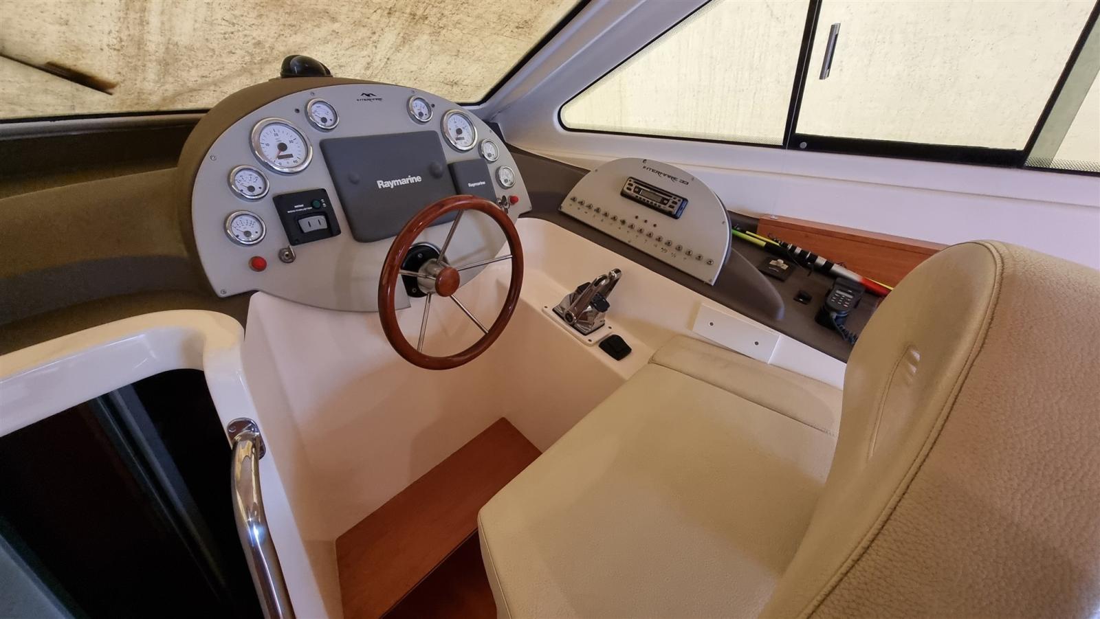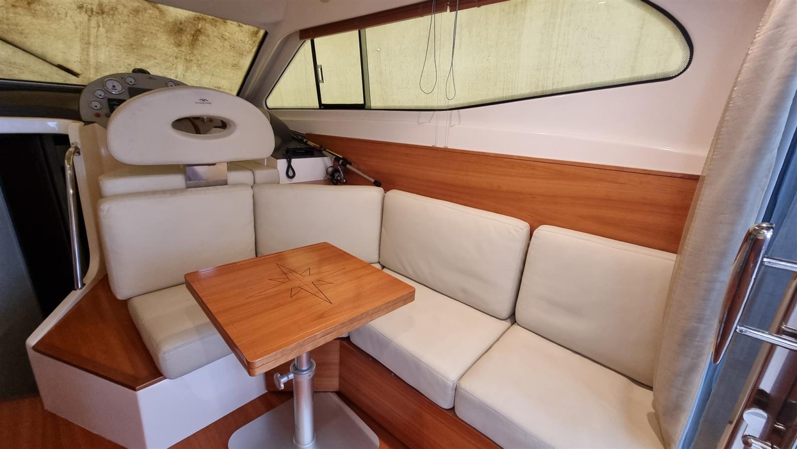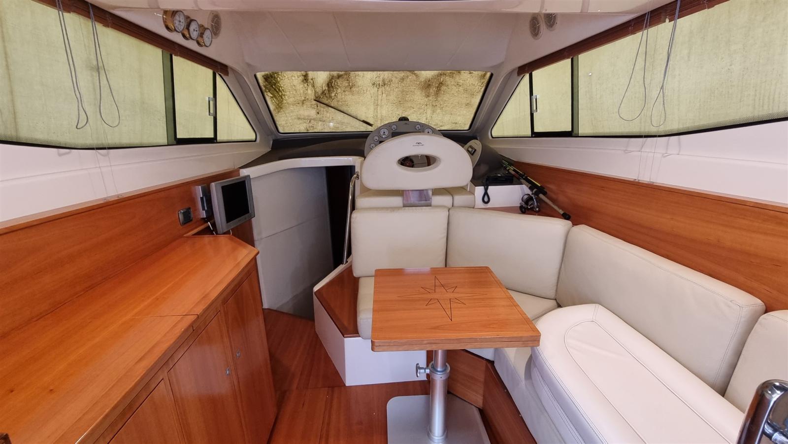 Travaux réalisés : Polissage complet, Revêtements silicone des vitres latérales et avant, Revêtements silicone teck sur marches et plate-forme du cockpit, Montage du bimini inox 4 arches pour flybridge, Montage de deux prises de courant cockpit 12 V, Montage de 3 batteries de 180 A pour les services 1 moteur et 1 batterie pour le propulseur d’étrave 105 En juillet 2024, Construction d’un système d’eaux noires, Remplacement de l’éclairage du cockpit, accouplement en silicone du rouf, installation de la télécommande du pilote automatique, caoutchoutage de la plate-forme arrière, protection de l’ancre d’étrave en acier inoxydable, nouveau radeau Eurovinyl COASTAL DRY 10 places, nouveaux coussins d’étrave avec housse de protection relative, nouveaux coussins de double-toit canapé et chaise longue complets, nouveaux coussins de poupe sièges et dossiers ronds, Fermeture totale du double-toit, fermeture totale du cockpit, protection de la passerelle, nouvelle moquette, nouvelles couvertures de vitres latérales et avant.