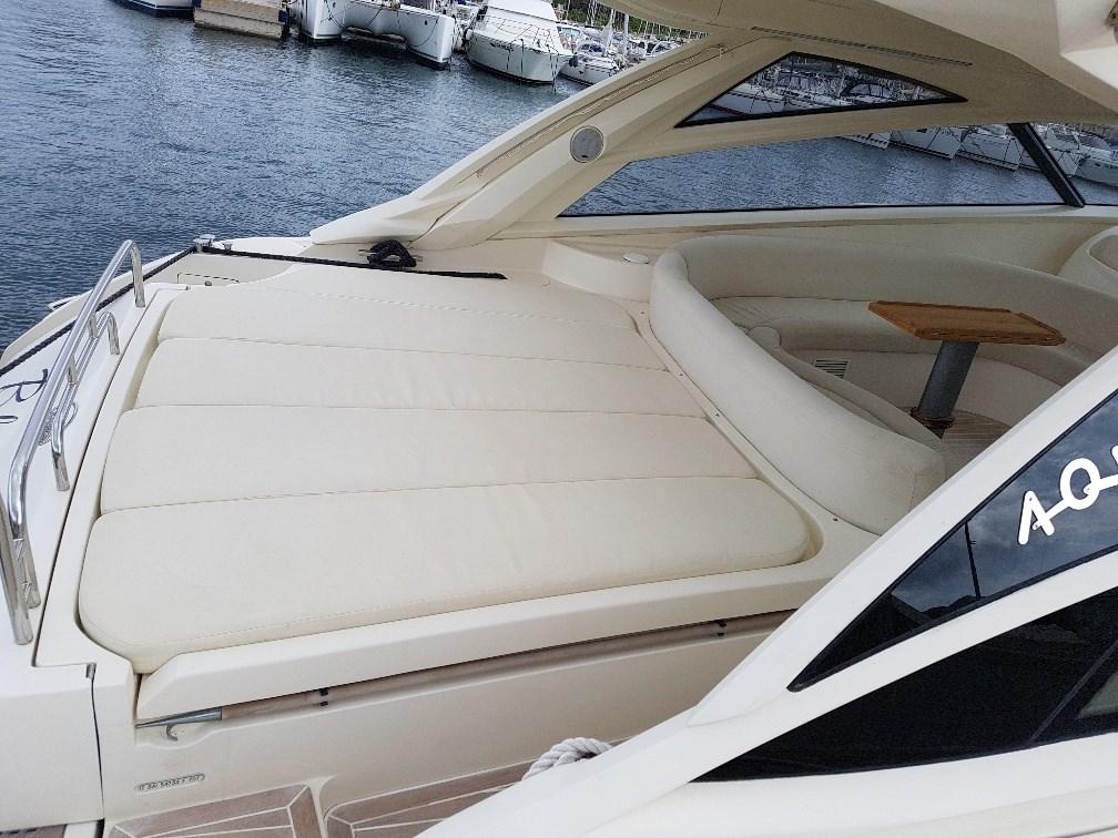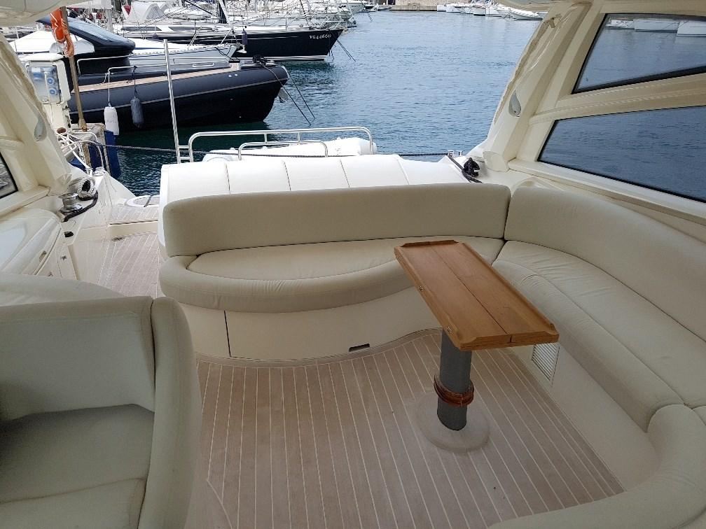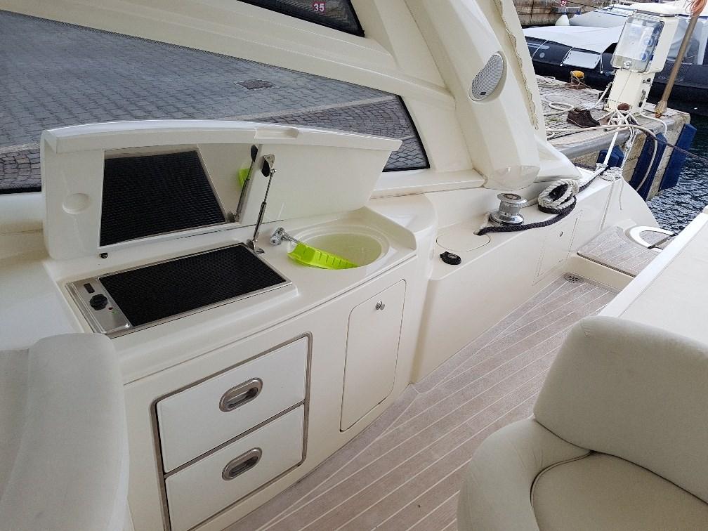 Alarme moteur, Alarme de pompe de cale, Eau sous pression, Douche de cockpit, Flaps hydrauliques, Hard top, Éclairage de courtoisie, Passerelle, Pompe de cale automatique, Pompe de cale manuelle, Cockpit en teck, Prise de quai, Connexion eau sous pression à quai, Guindeau électrique, Echelle de bain, Annexe, T-Top, Winch électrique arrière.
