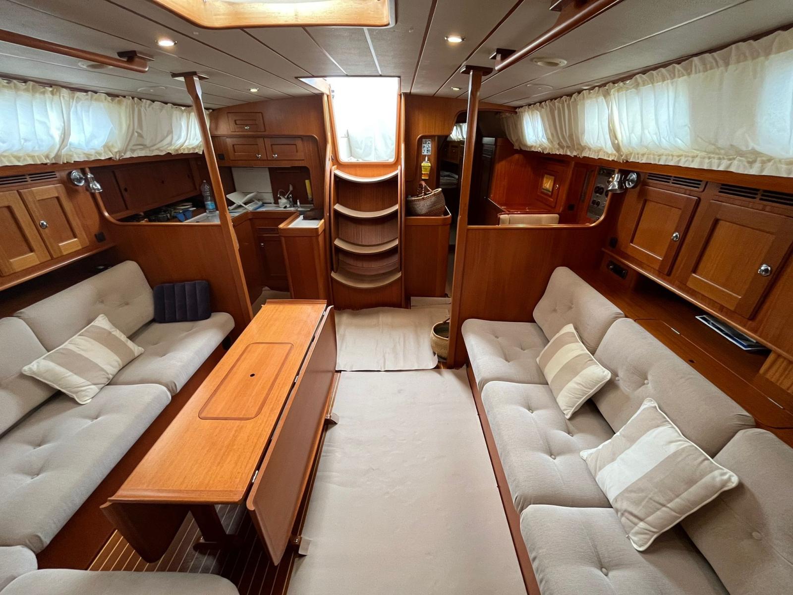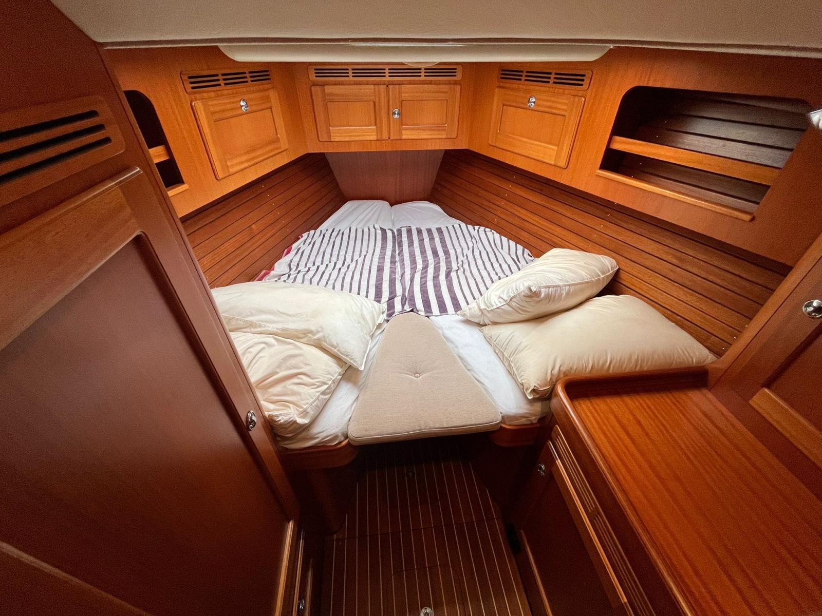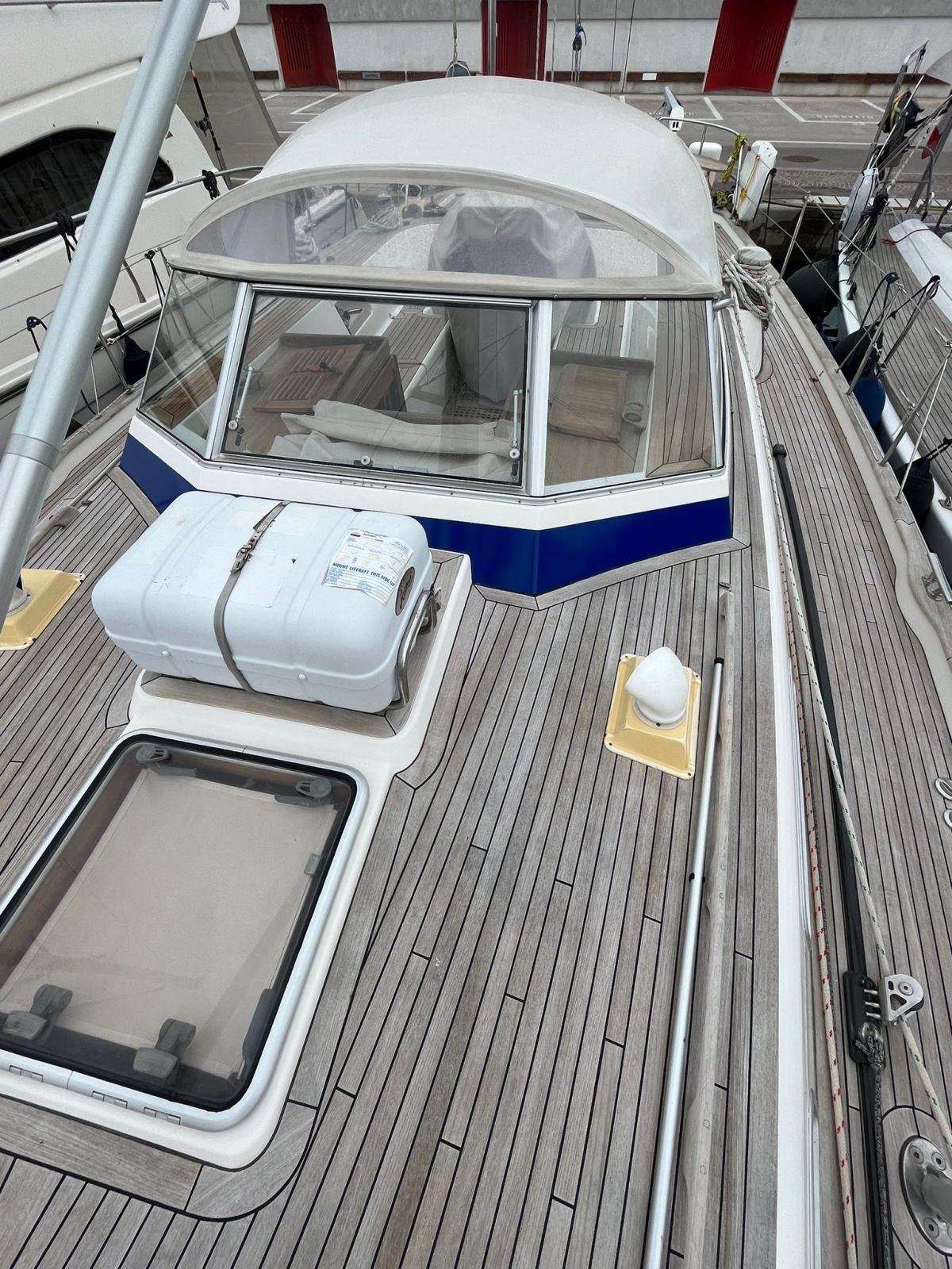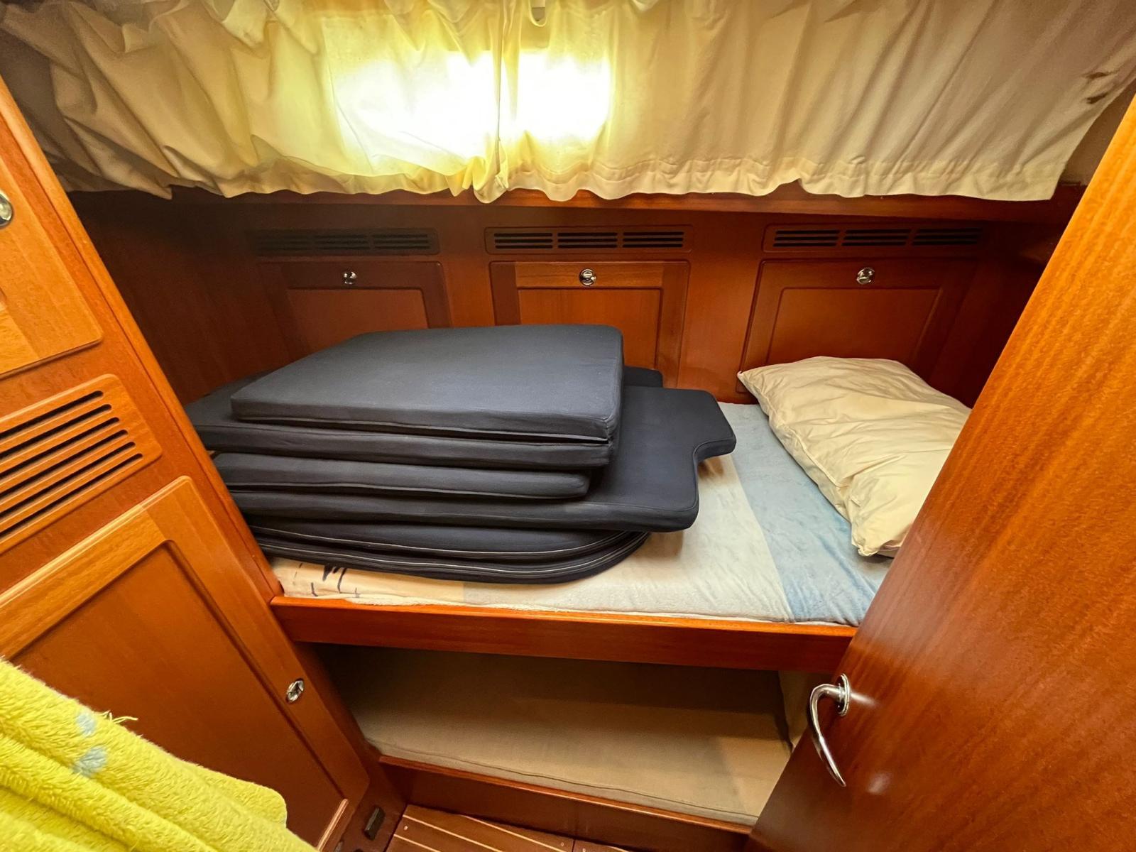 Cabine propriétaire arrière avec deux lits simples et canapé central, console de beauté, salle de bains avec douche séparée ; Lits en V de la cabine avant ;Lits superposés de la cabine invité à droite ; Salle de bain invités sur la gauche avec douche séparée. Toilettes électriques d’eau douce avec pompe Jabsco nouvelle cuisine en forme de U 2022.U sur la droite avec four et cuisinière à gaz 3 feux, lave-vaisselle, réfrigérateur de puits et évier double ; Puits congélateur dans le couloir vers la poupe. Tableau graphique à gauche. Rouleau de flèche Sloop.Furlex et caisse claire hydraulique. Genoa et grand-voile NorthSails NOUVEAU 2021, Rail à rouleaux manuels (original), Enrouleur gennaker (comme neuf). Guindeau d’ancrage électrique Lewmar (révision 2023), chaîne en acier inoxydable 100m 13mm. Vang et Paterazzo hydraulique Holmatro, Tendipaterazzo Holmatro (2023), 2 treuils électriques génois, 1 treuil électrique + 1 manuel grand-voile. Dessalinisateur Enwa 130 l/h (hiverné et réactivé 2023) ; Préparation pour l’installation de la machine à laver dans le boîtier de la salle de bain avant ; Lave-vaisselle, pompe de cale (2023). Capot de pulvérisation fixe avec fenêtres ouvrantes, plateau Bimini, coussins de cockpit, bossoirs électriques Simpson Davits 175kg (câbles remplacés 2023), plate-forme arrière hydraulique, passerelle, annexe Rubber Gibsy 2022 (garantie 5 ans). Instrumentation Raymarine (mise à jour du logiciel 2023) : traceur E80, antenne NUOVA 2023, pilote automatique ST7001G Plus, radar 4kw, Echo, Vhf / DSC 240E, traceur interne et clavier avec répéteurs traceurs dans le cockpit, Smart Controller ; Navtex Furuno, MeteoMan.Generator MASTERVOLT WHISPER 6 ULTRA (service extraordinaire 2021), Chargeur de batterie et onduleur NOUVEAU 2023, batteries gel AGM NOUVEAU 2022, % têtes) : 6x24V, 2x12V.