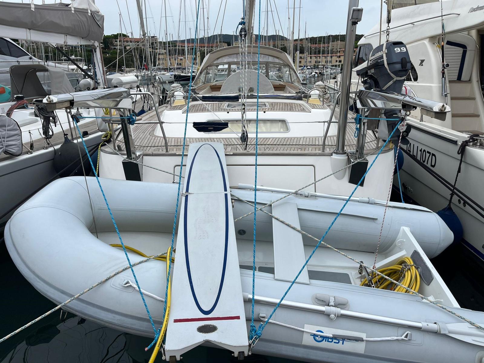 Batteries (AGM AL GEL 2022), Bossoirs (SIMPSON DAVITS), Passerelle, Plateforme arrière, Pompe de cale électrique (2023), Guindeau électrique, Annexe (GIBSY 2022), Winch, 2 Winch électrique.